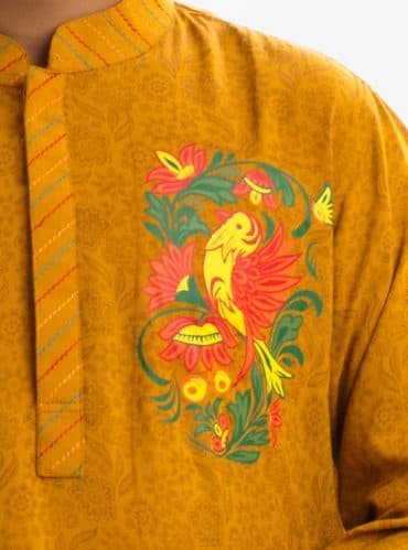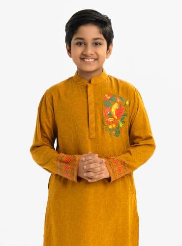 Ethnic panjabi in cotton jacquard fabric. Karchupi on the collar and placket. Inseam side pockets.