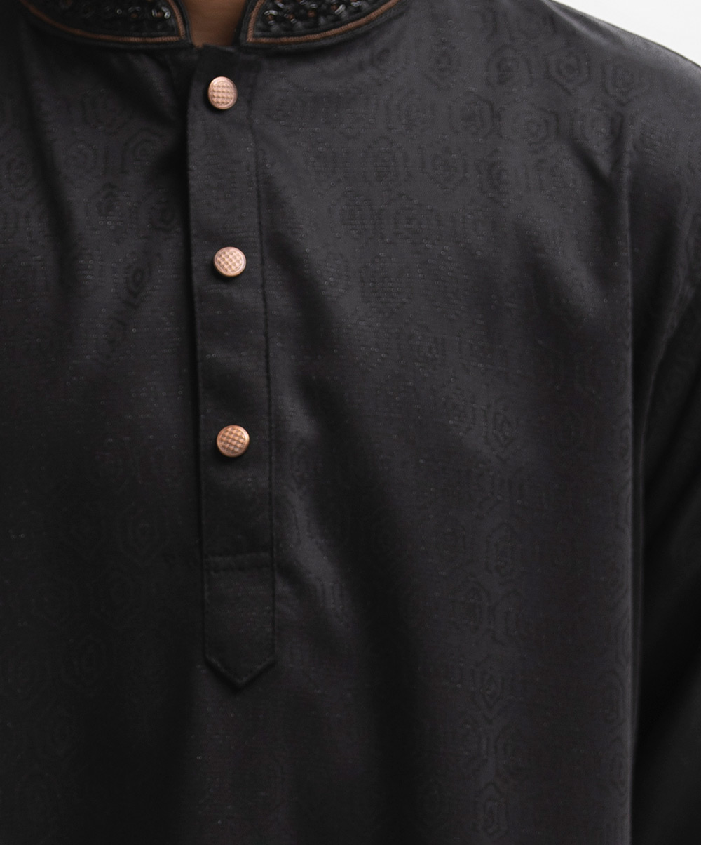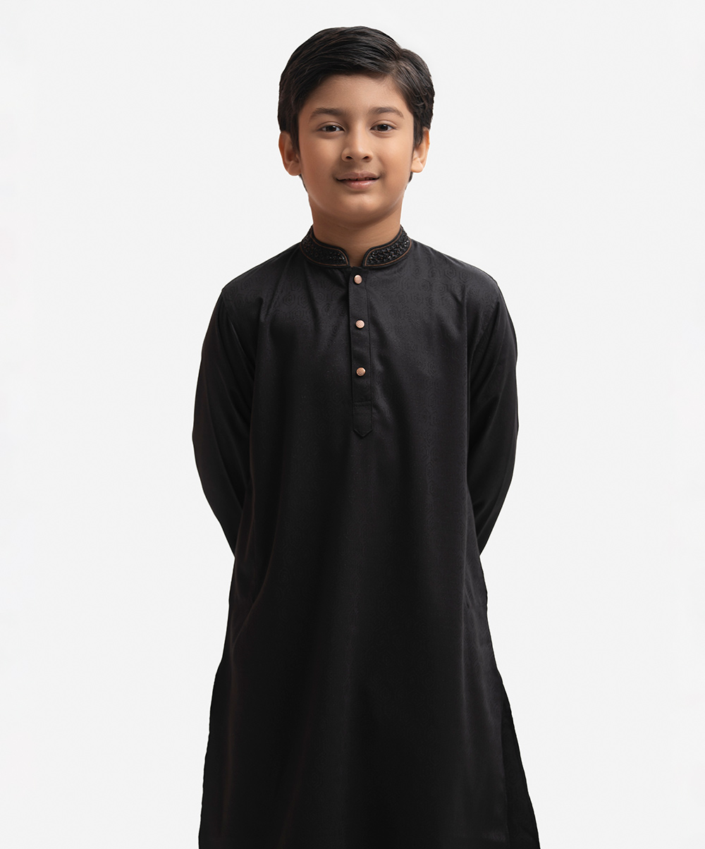 Black Jacquard Kids Panjabi