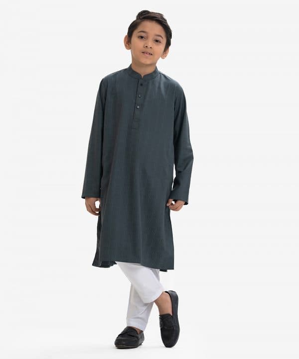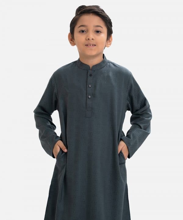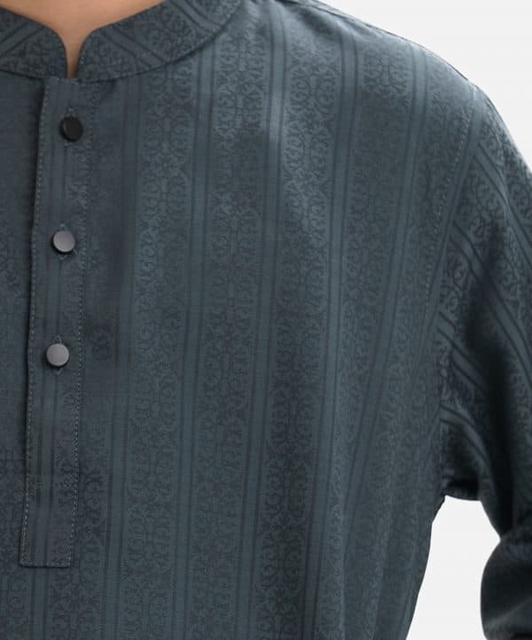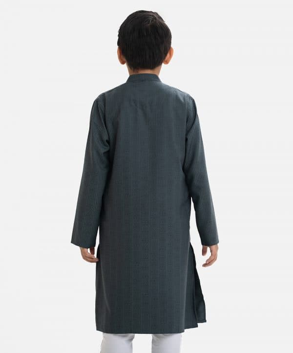 Classic mandarin collar panjabi in cotton jacquard fabric. Long sleeves, inseam side pockets.