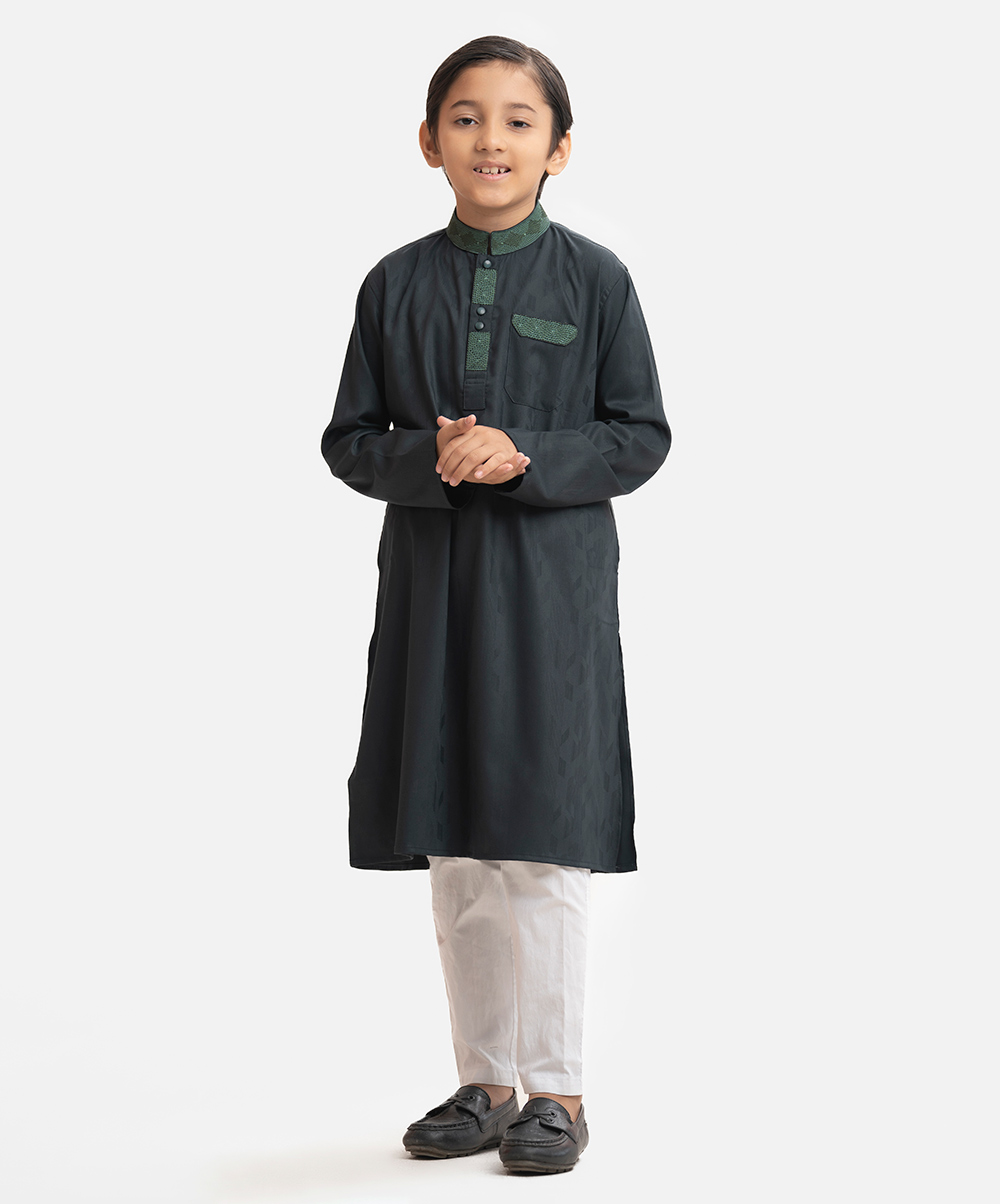 Green Jacquard Kids Panjabi
