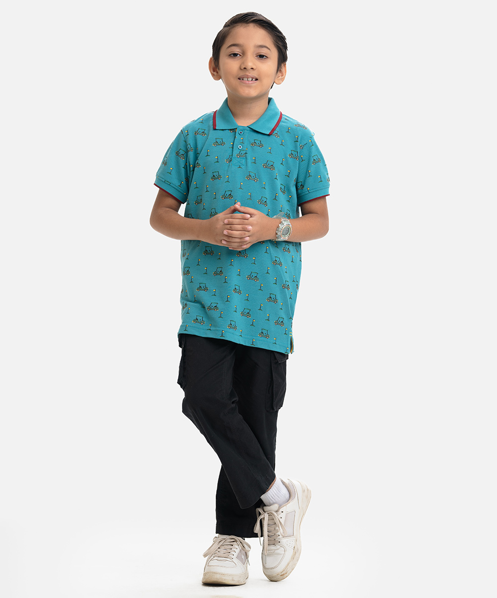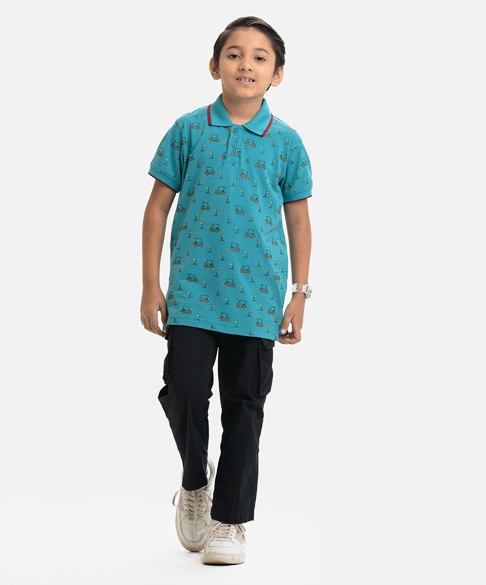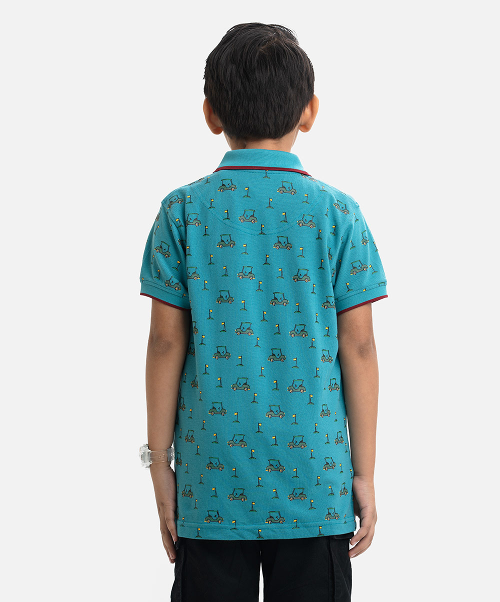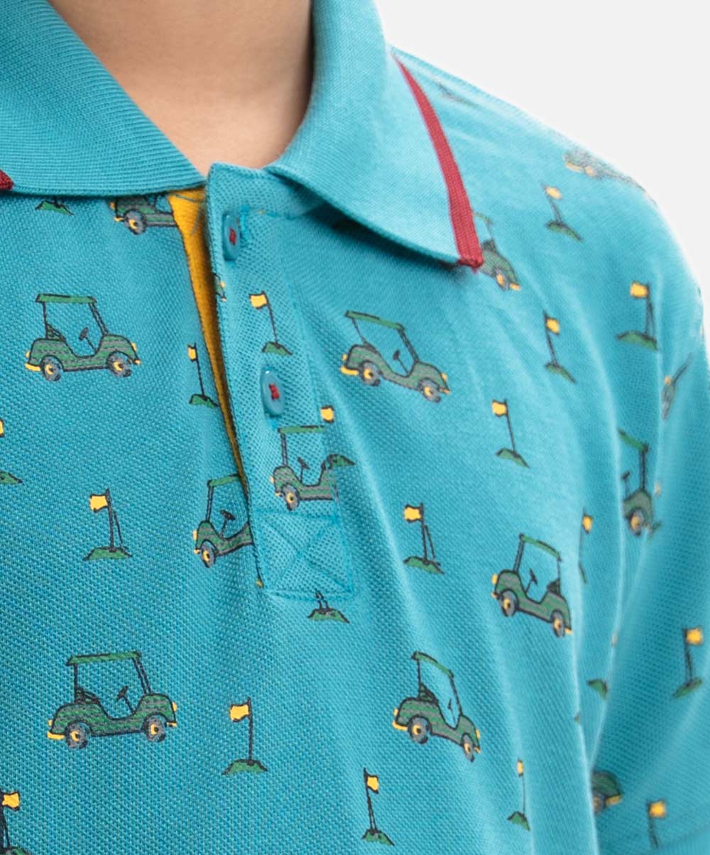 Kid boys Polo in cotton pique fabric. Classic collar, short sleeves and all-over printed.