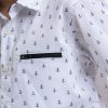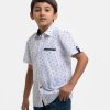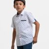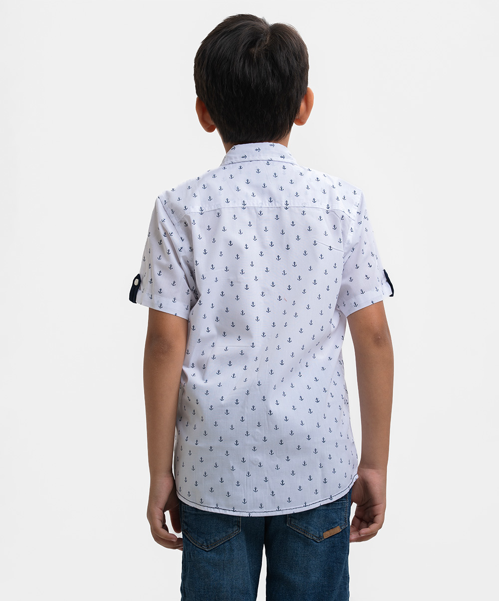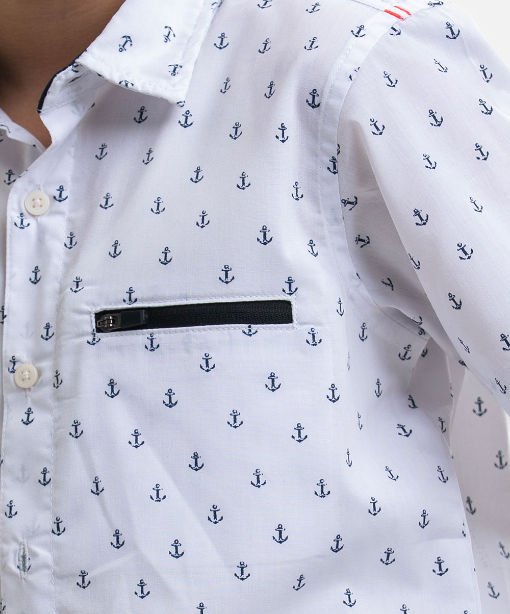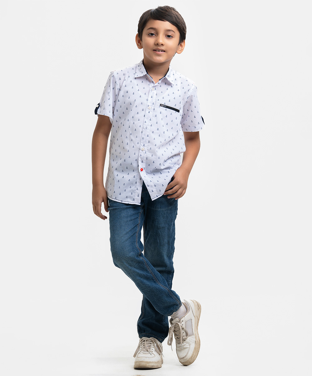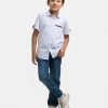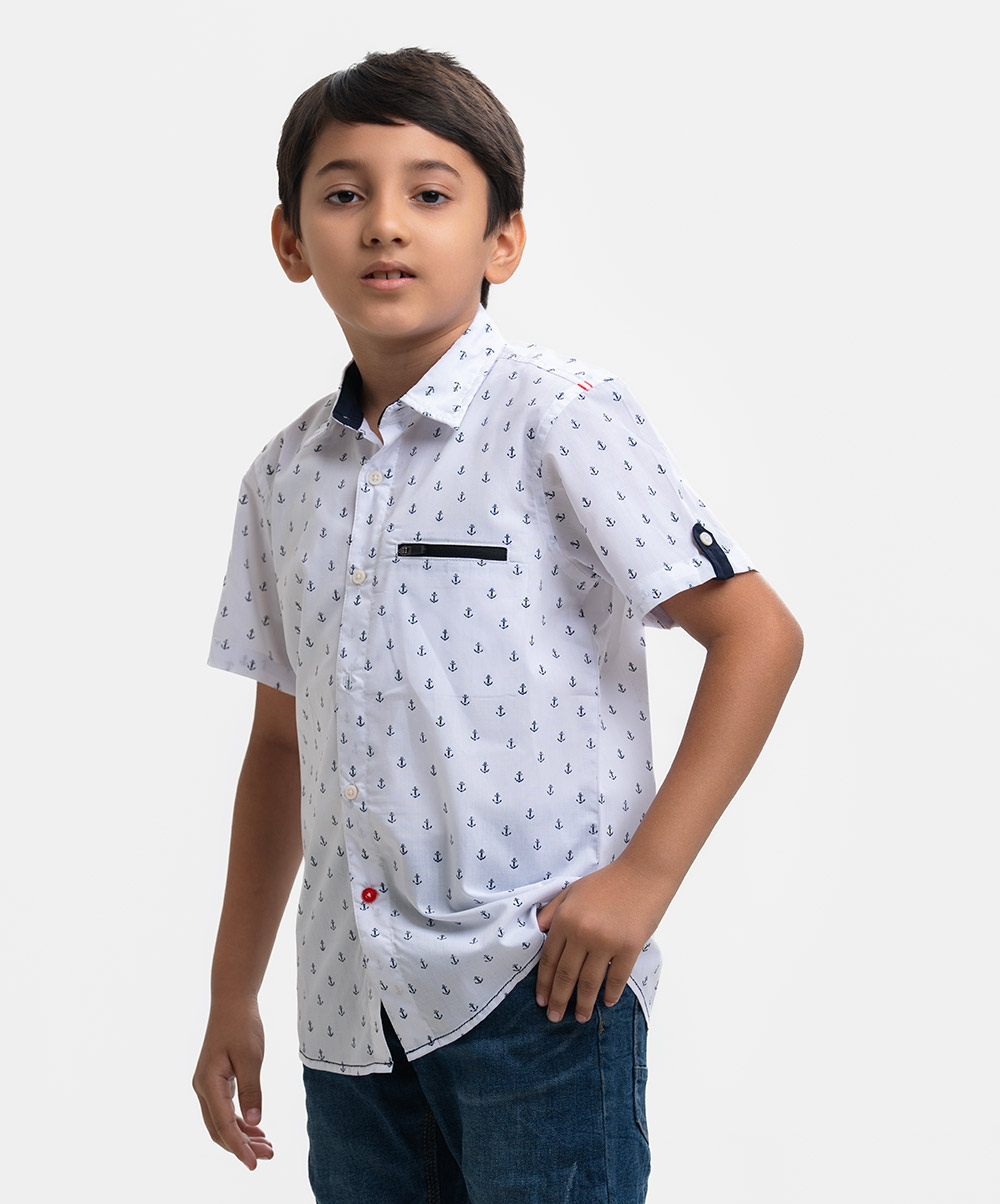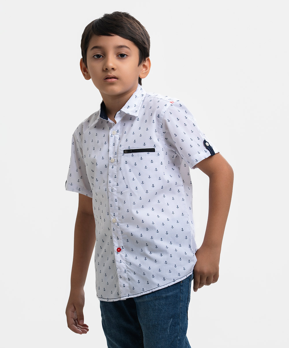 Kids short sleeved casual fabric in cotton fabric. Classic collar, zipper closed chest pocket.