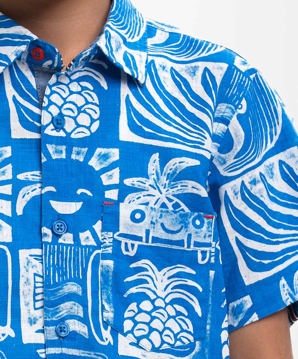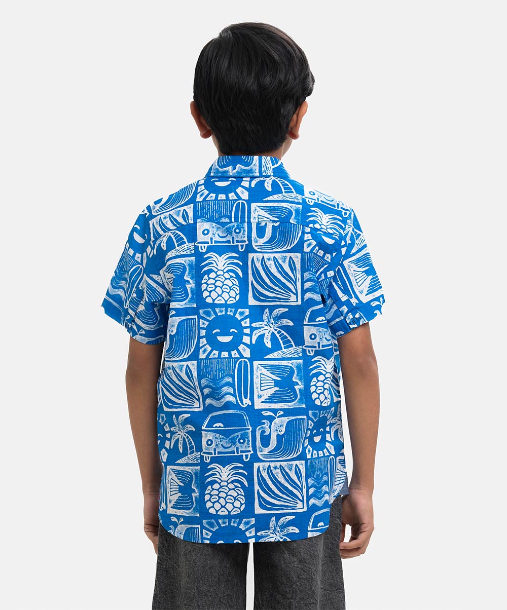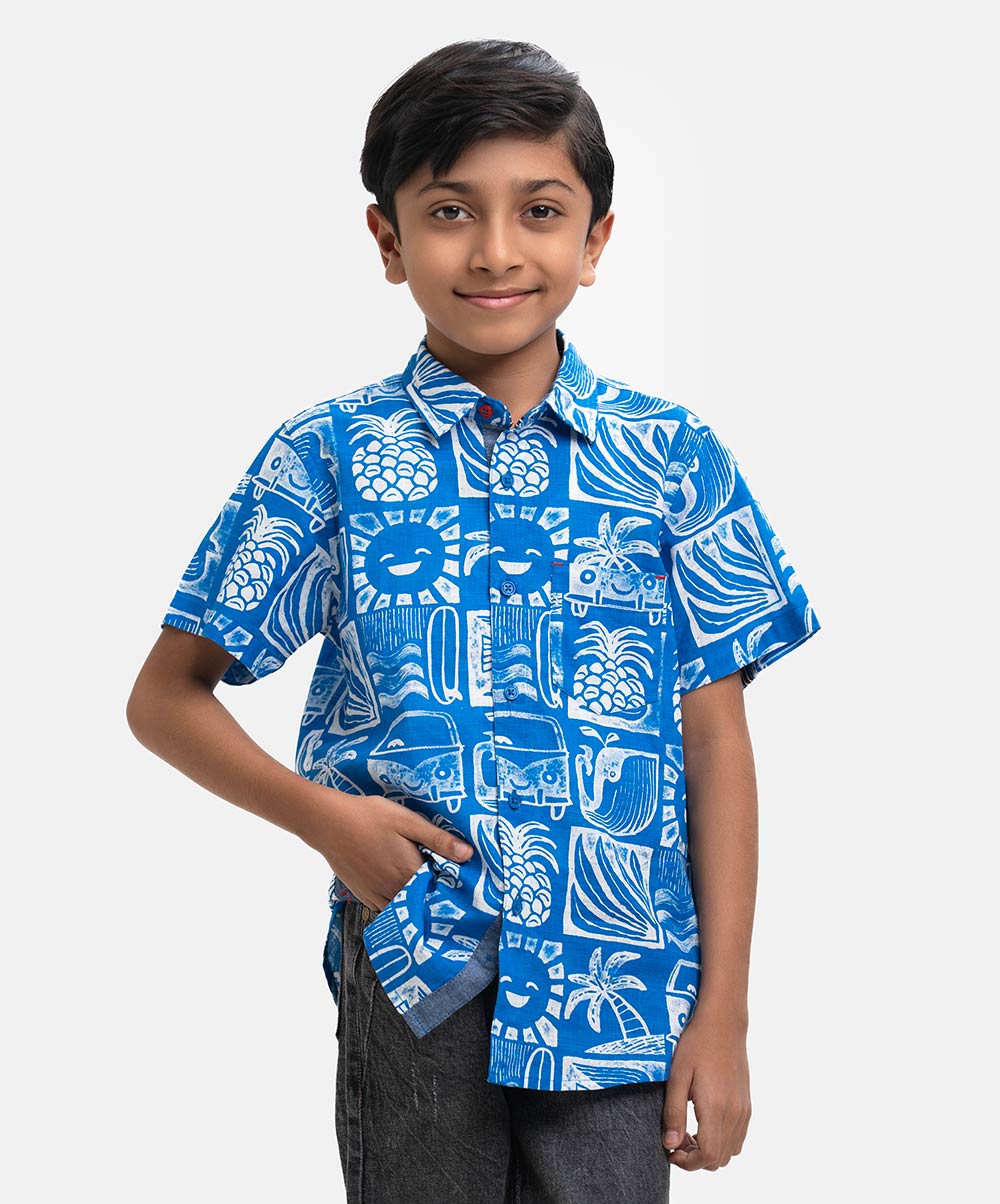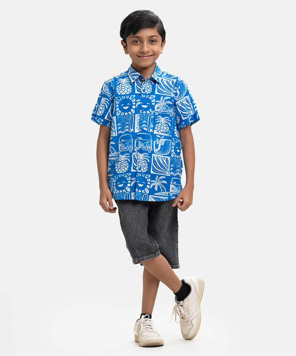 Blue Cotton Kids Casual Shirt