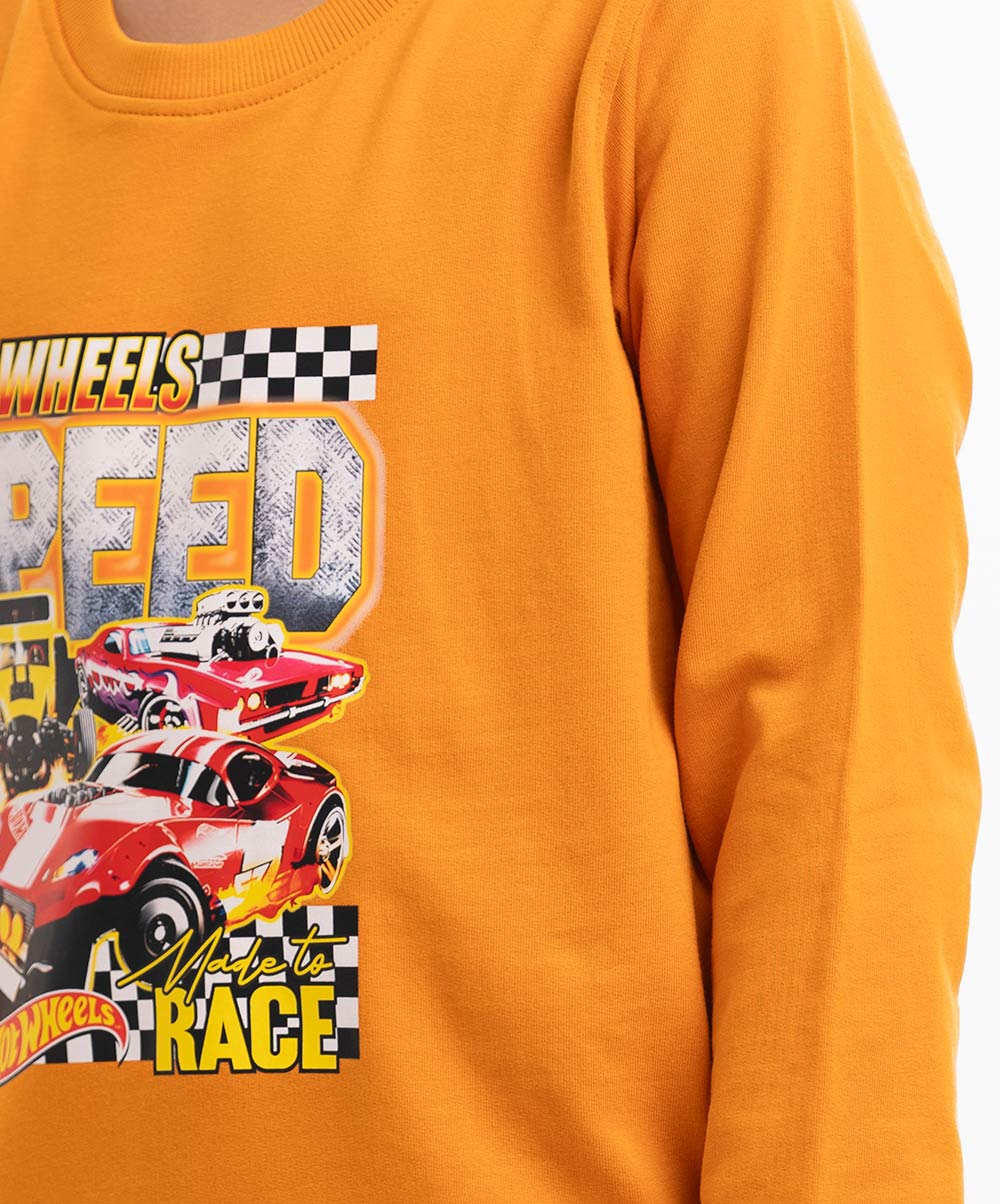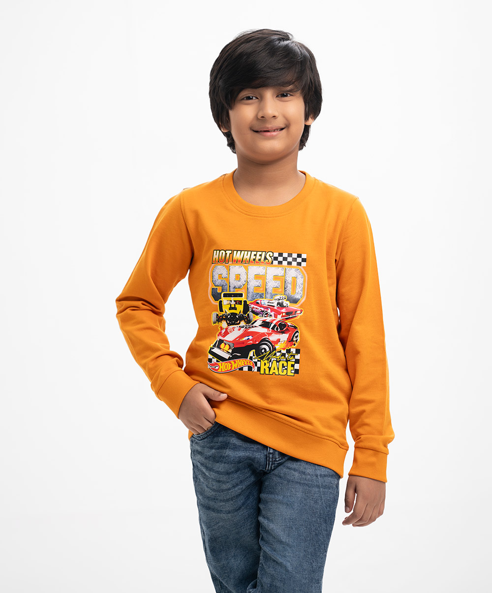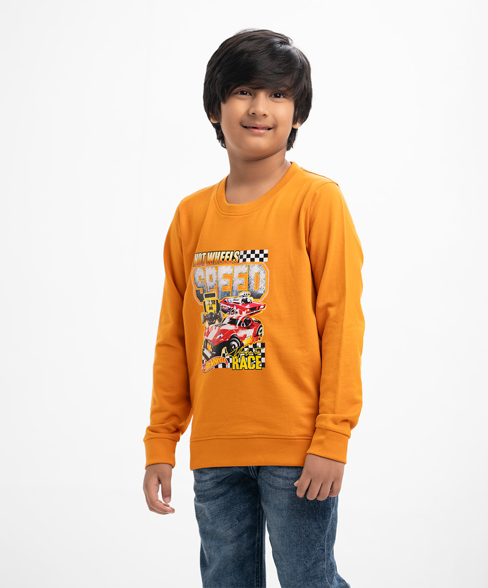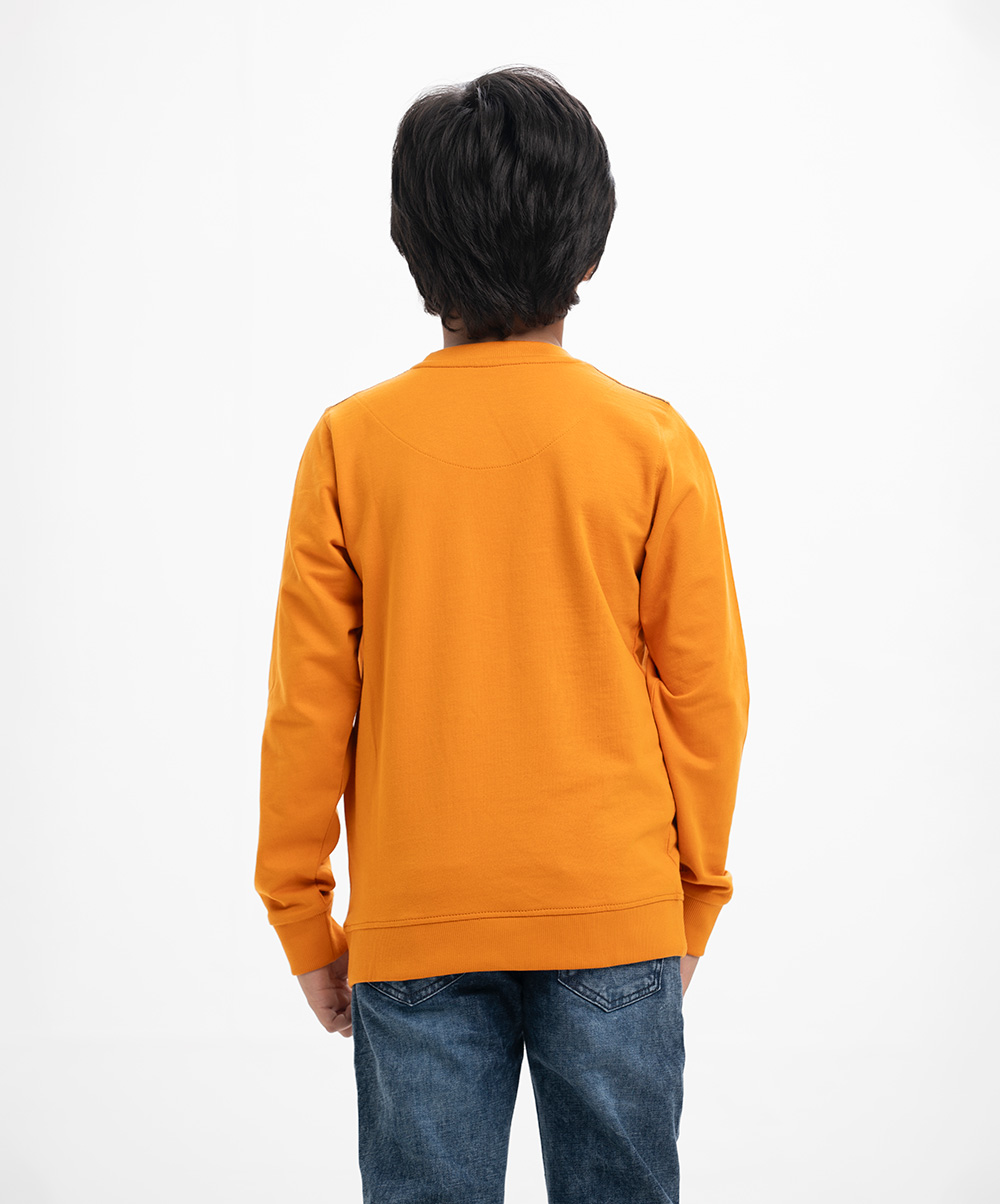 Round neck full-sleeved Sweatshirt in French terry knit fabric. Ribbed on the collar and cuffs, printed on the chest.