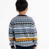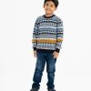 Kid boy’s geometric printed sweater in blended cotton knit fabric. Round collar, full sleeves and a straight hem. Featuring narrow ribbing at the collar, cuffs, and hem.