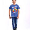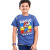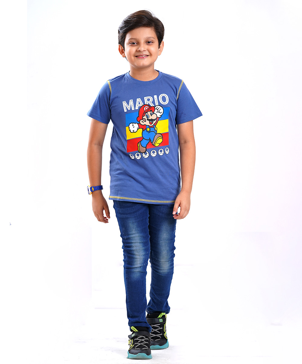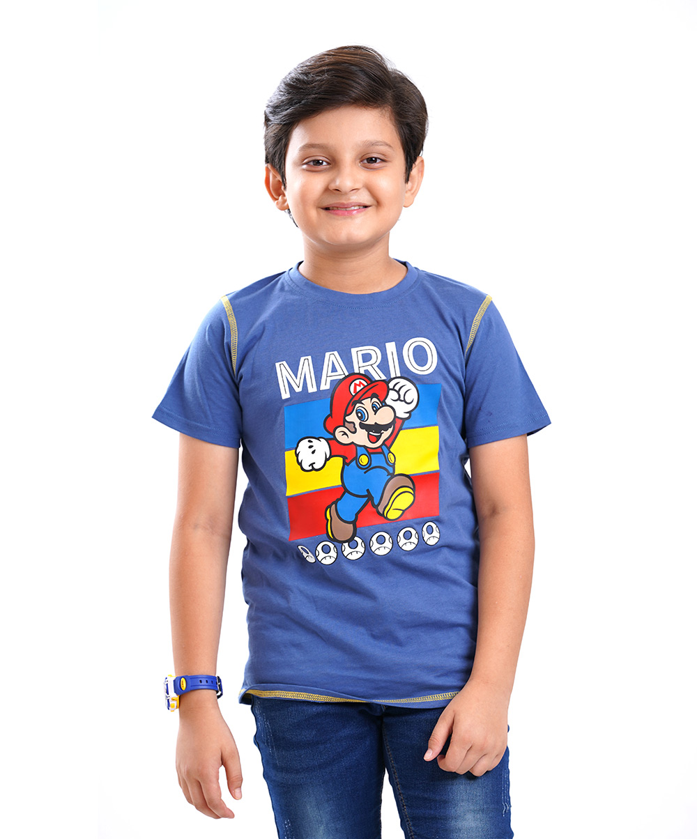 Blue Mario printed short-sleeved T-shirt in cotton single jersey fabric