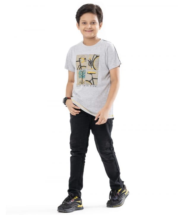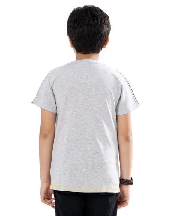 Gray short-sleeved T-shirt in Cotton single jersey fabric. Designed with a crew neck, short sleeves, and print on the chest. Contrast twill tape details at shoulders and cuffs.