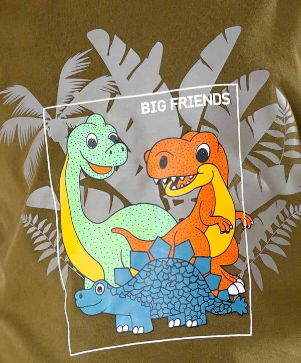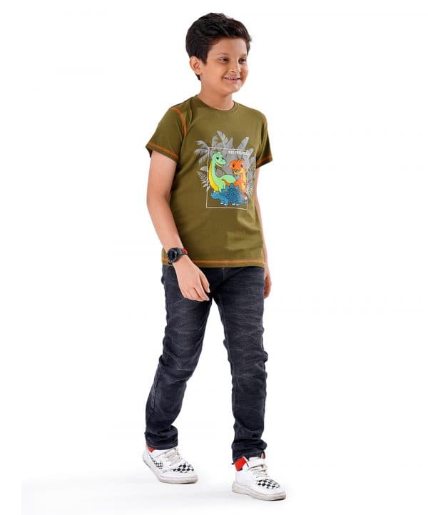 Olive Green T-Shirt in Cotton single jersey fabric. Designed with a crew neck, short sleeves and dragons print on the chest.
