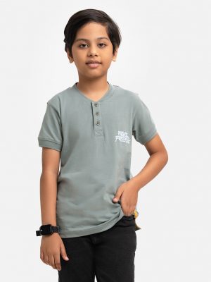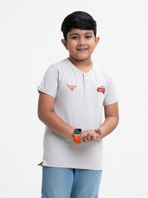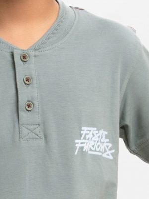 Gray short sleeve T-shirt in Single Jersey fabric with chest print.