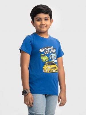 Kid boys t-shirt in cotton single jersey fabric. Crew neck, short sleeves and typography at front.