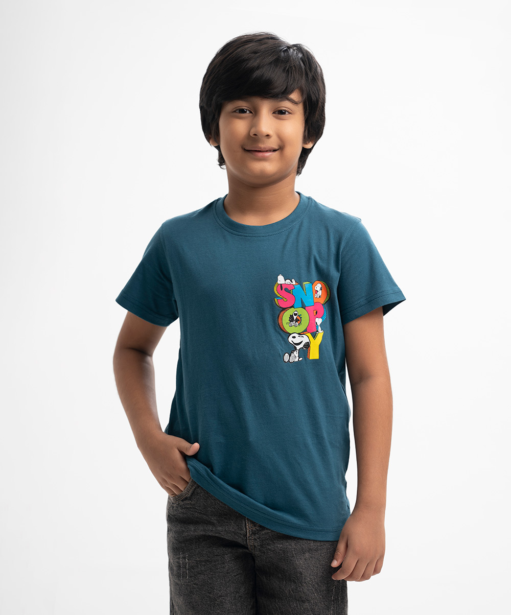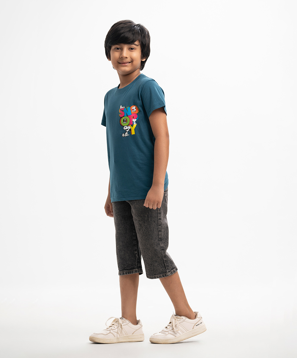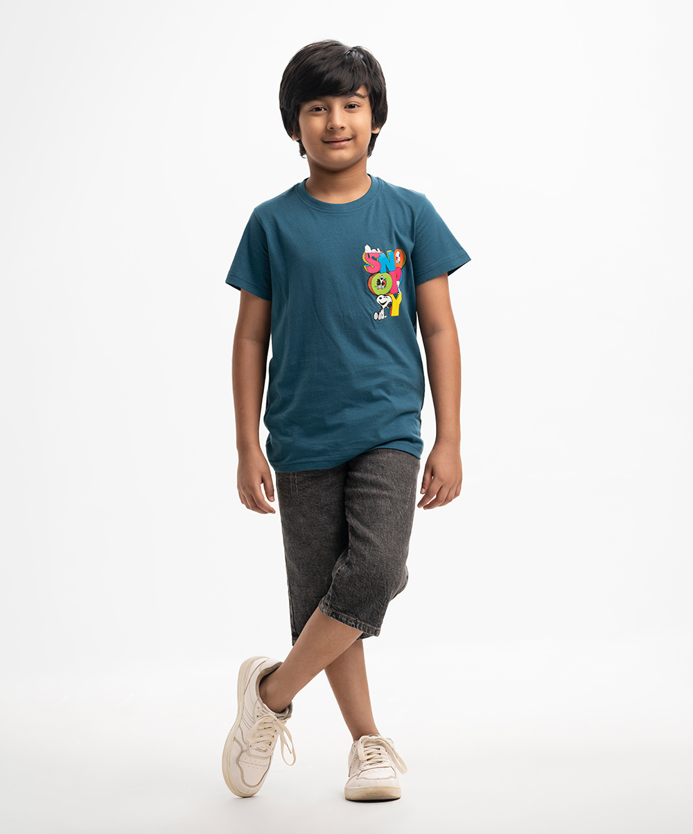 Kid boys t-shirt in cotton single jersey fabric. Round neck, short sleeves. Print detail at the front.