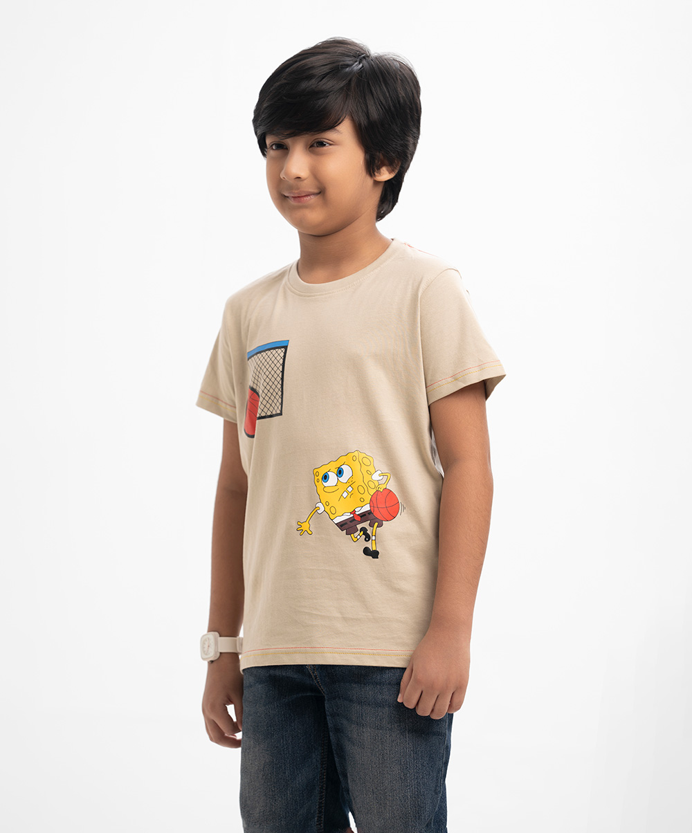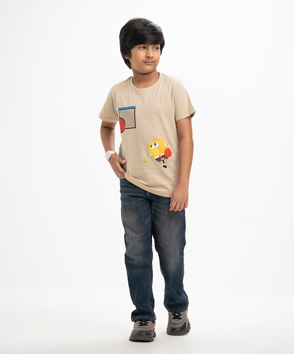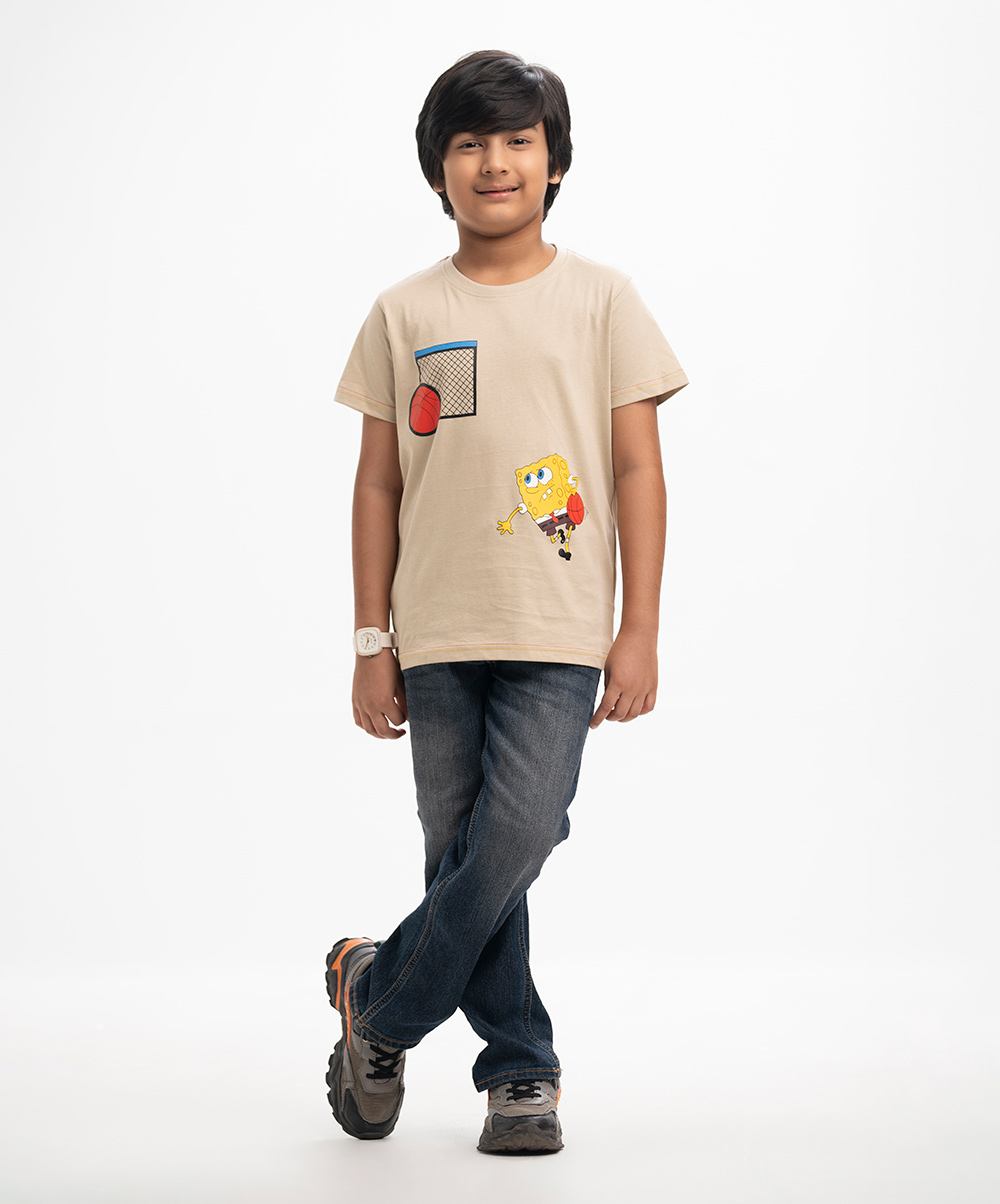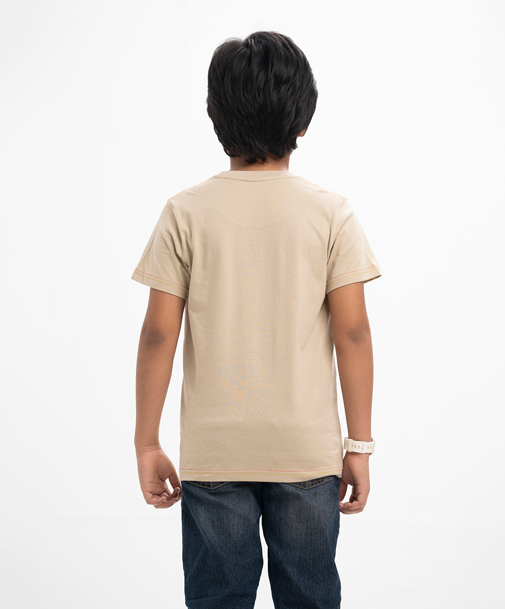 Boys’ short-sleeved t-shirt in cotton single jersey fabric. Contrast sewing lines over the shoulders. Printed on the chest.