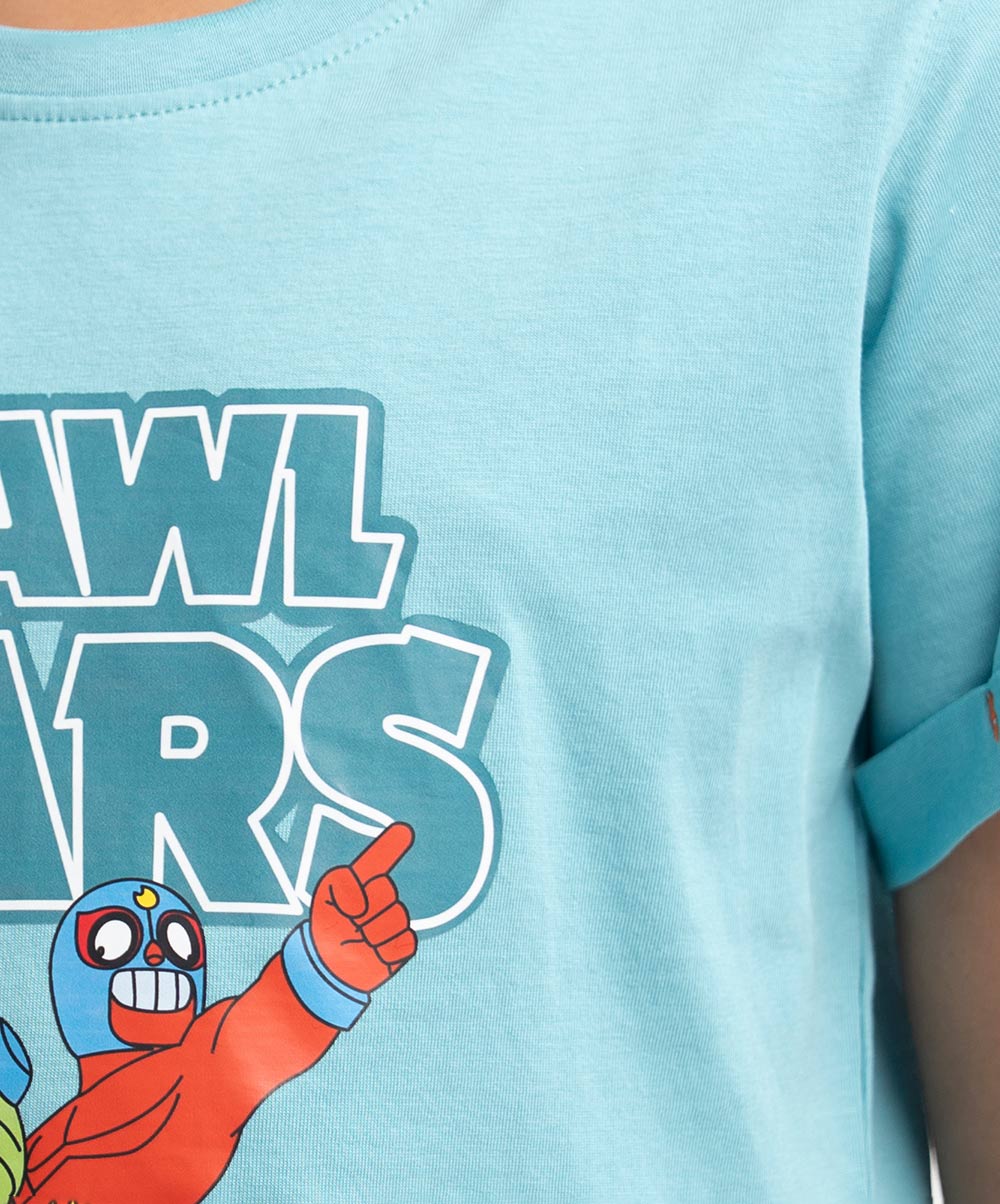 Kid boys t-shirt in cotton single jersey fabric. Round neck, short sleeves. Print at the front.