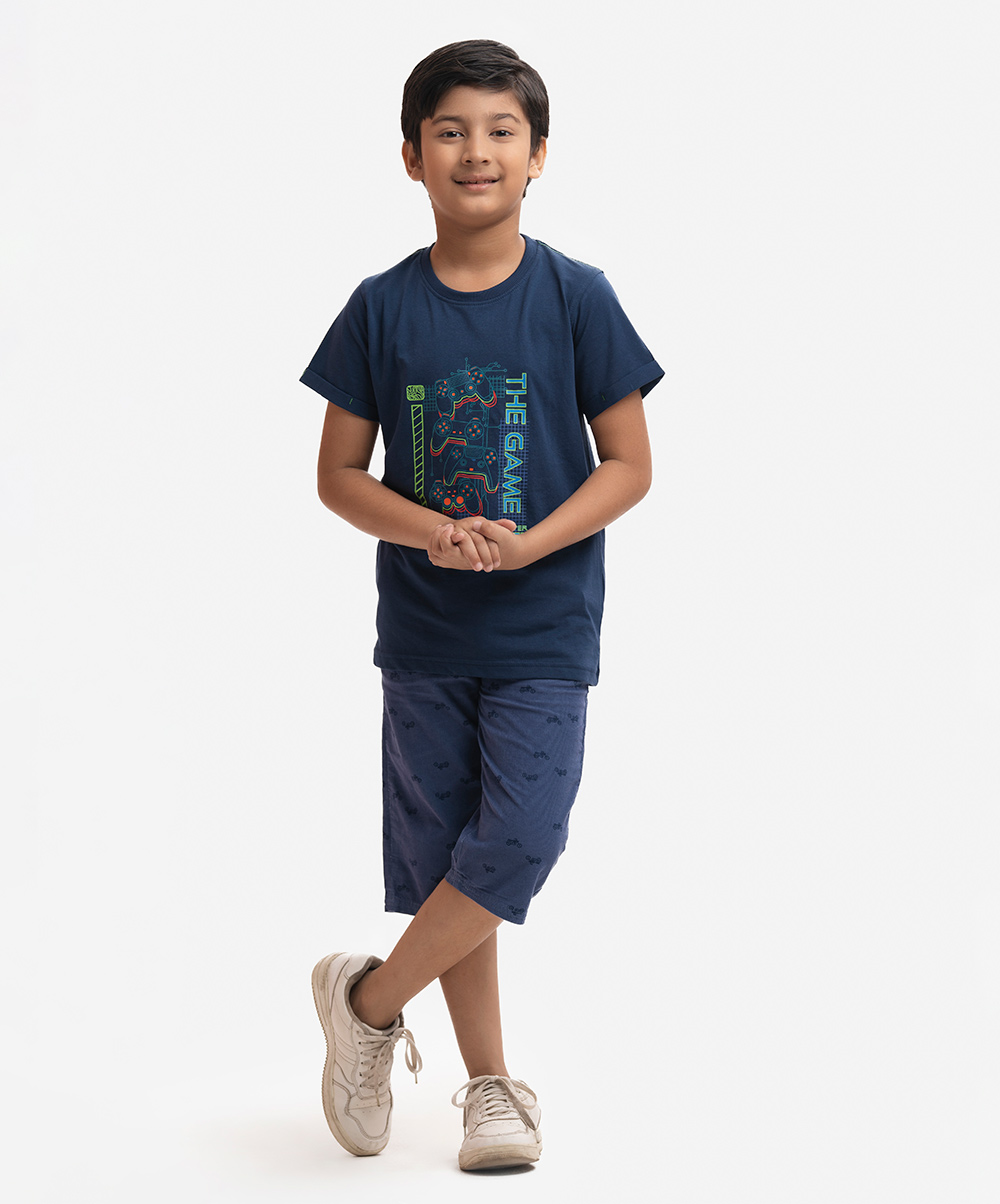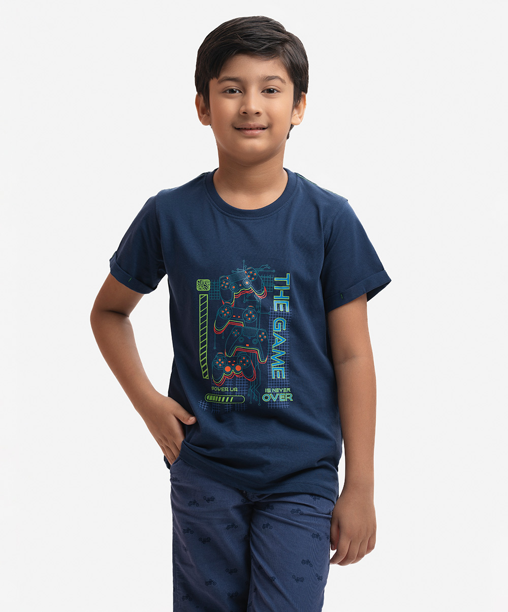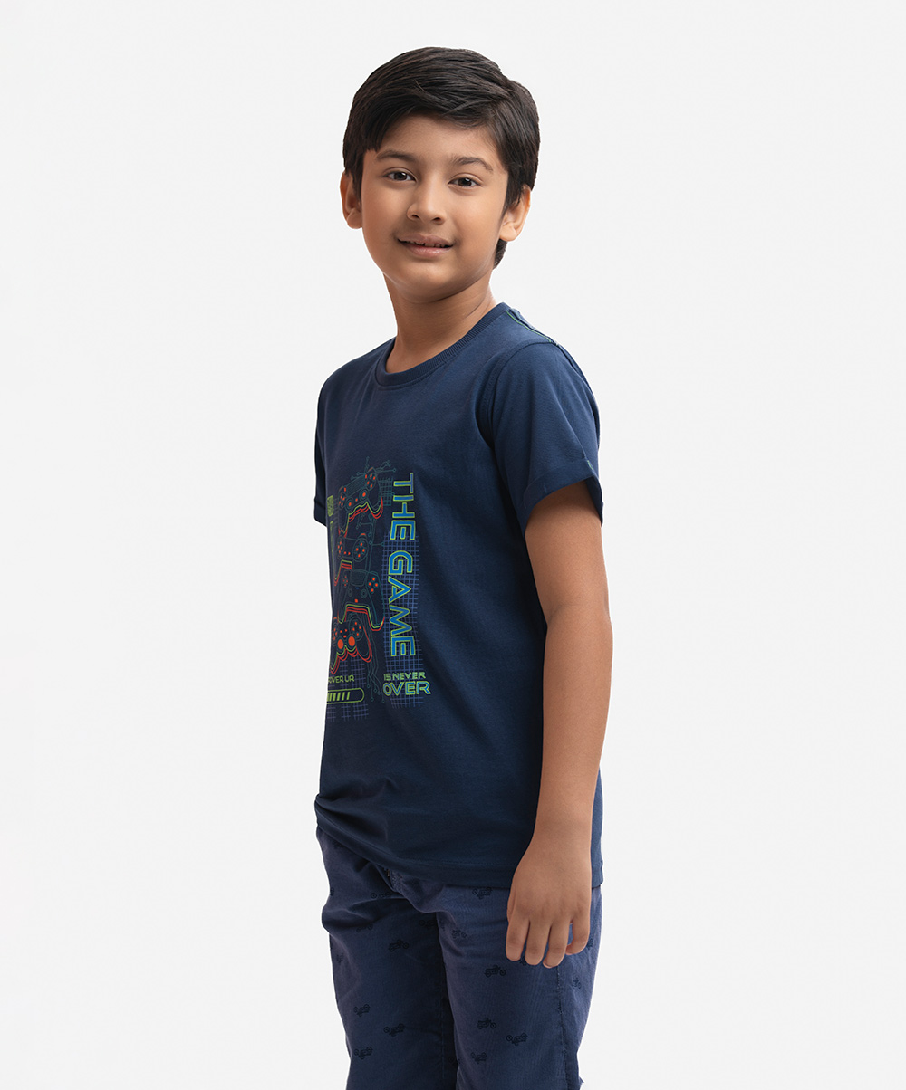 Kid boys short-sleeved T-shirt in single jersey fabric. Crew neck and gaming theme print at front.
