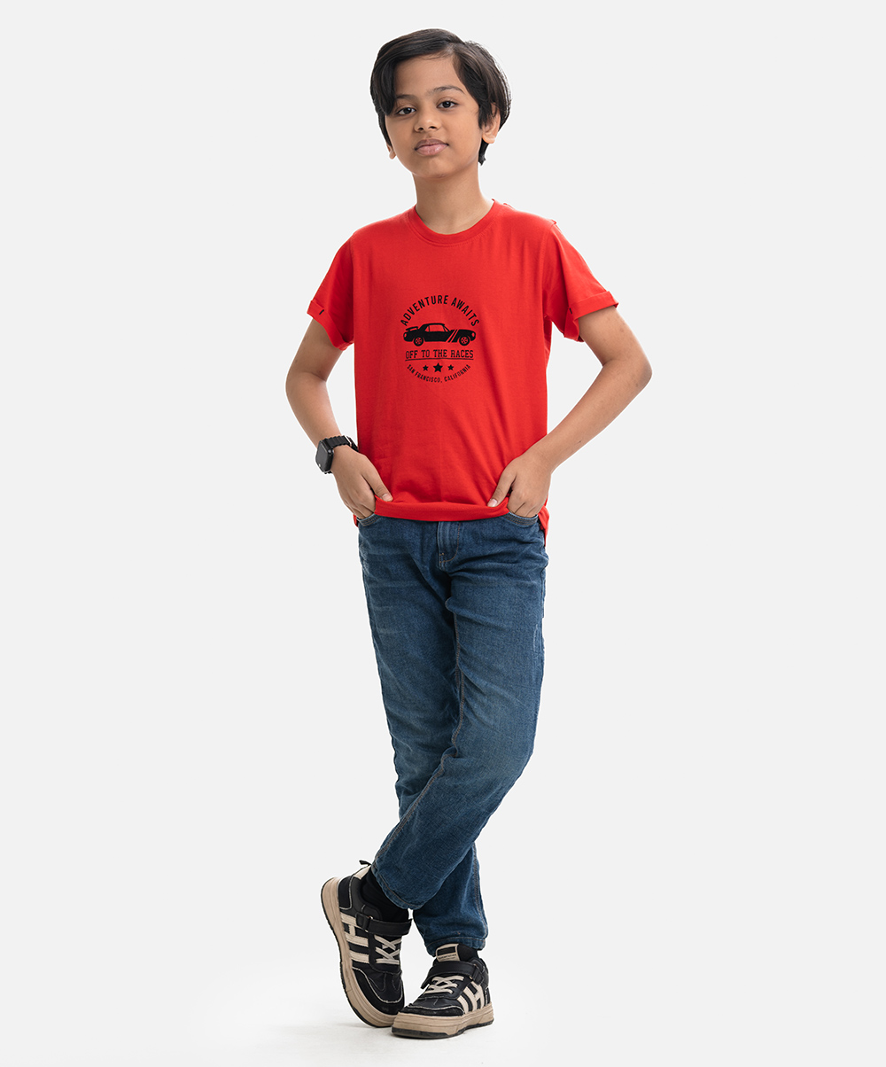 Red Cotton Single Jersey Kids T-shirt