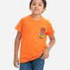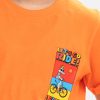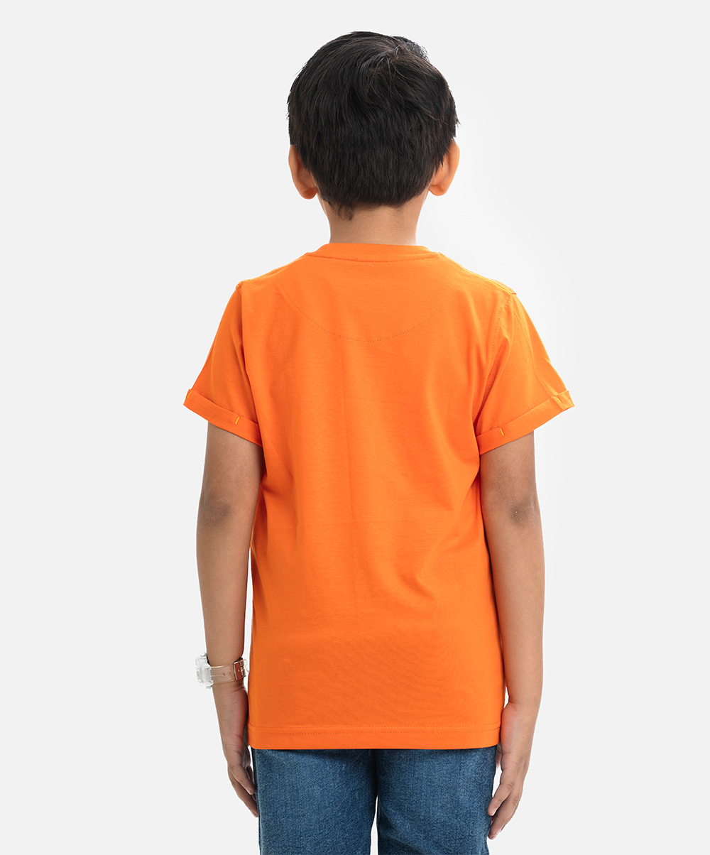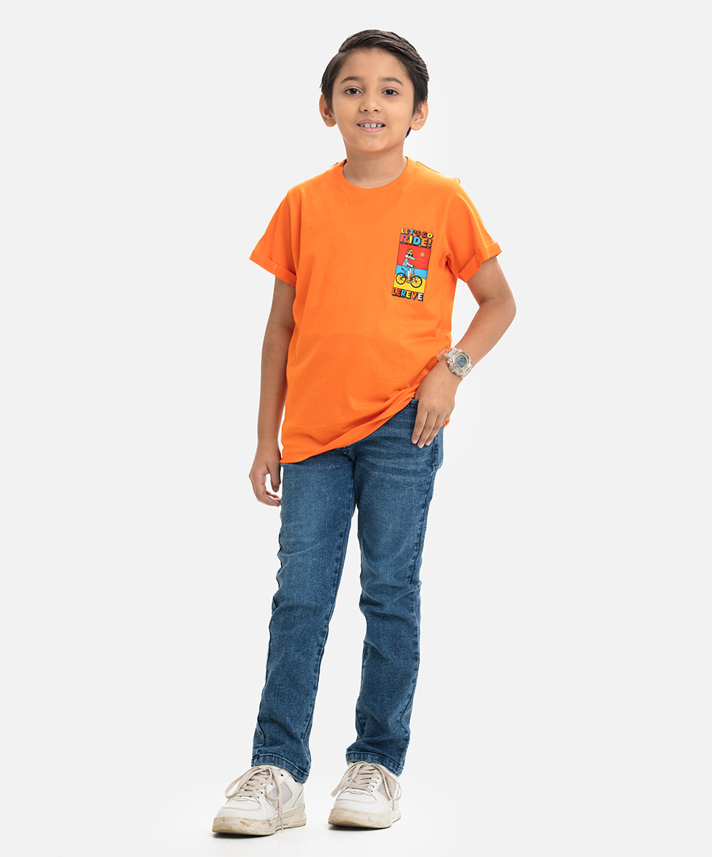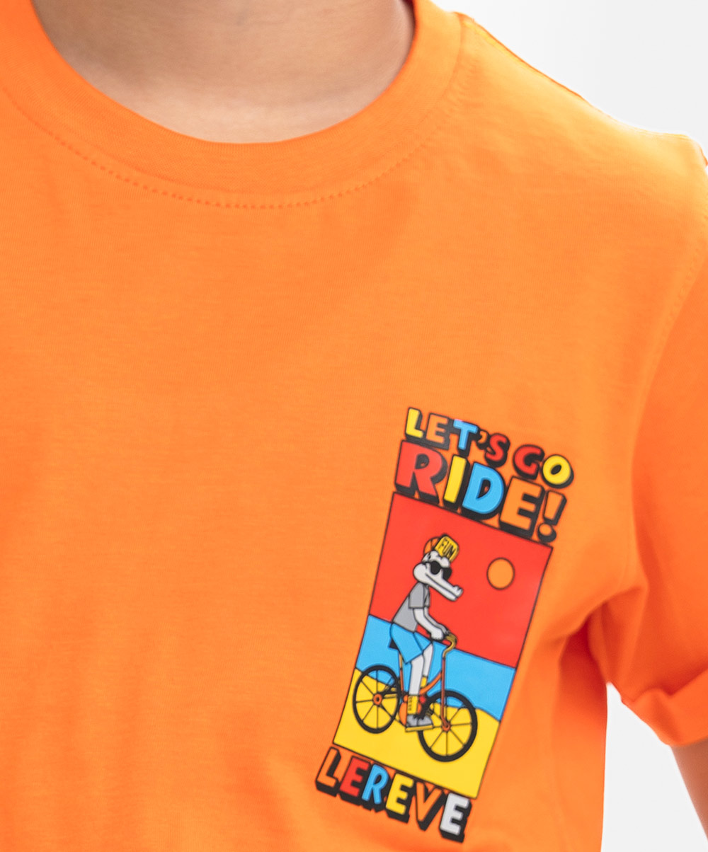 Round neck, short-sleeved kids’ T-shirt in cotton single jersey fabric.