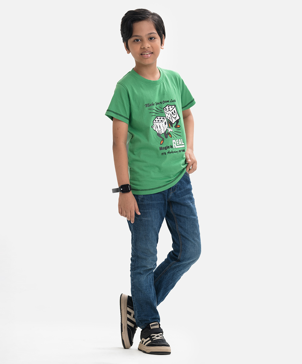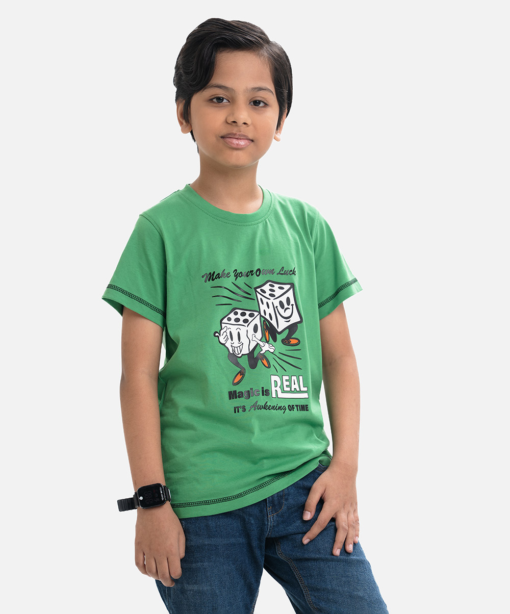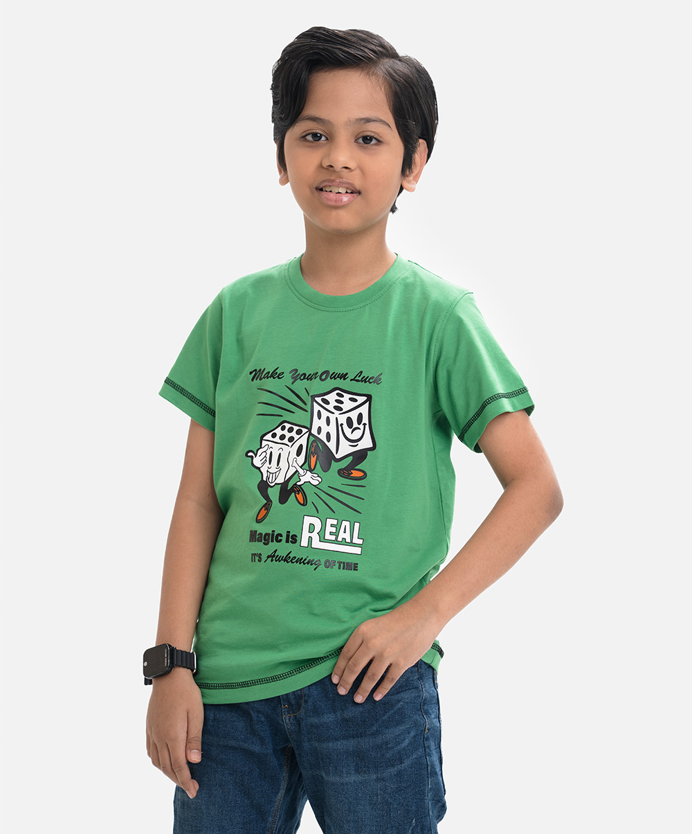 Green Cotton Single Jersey Kids T-shirt