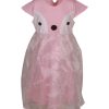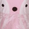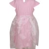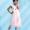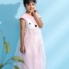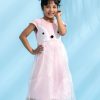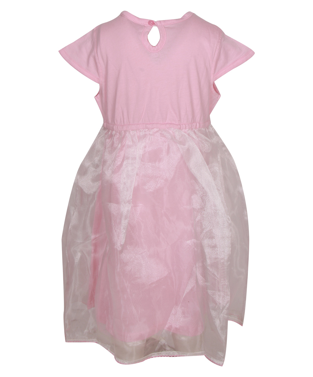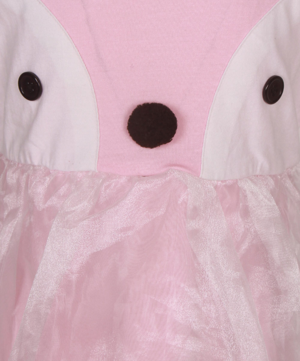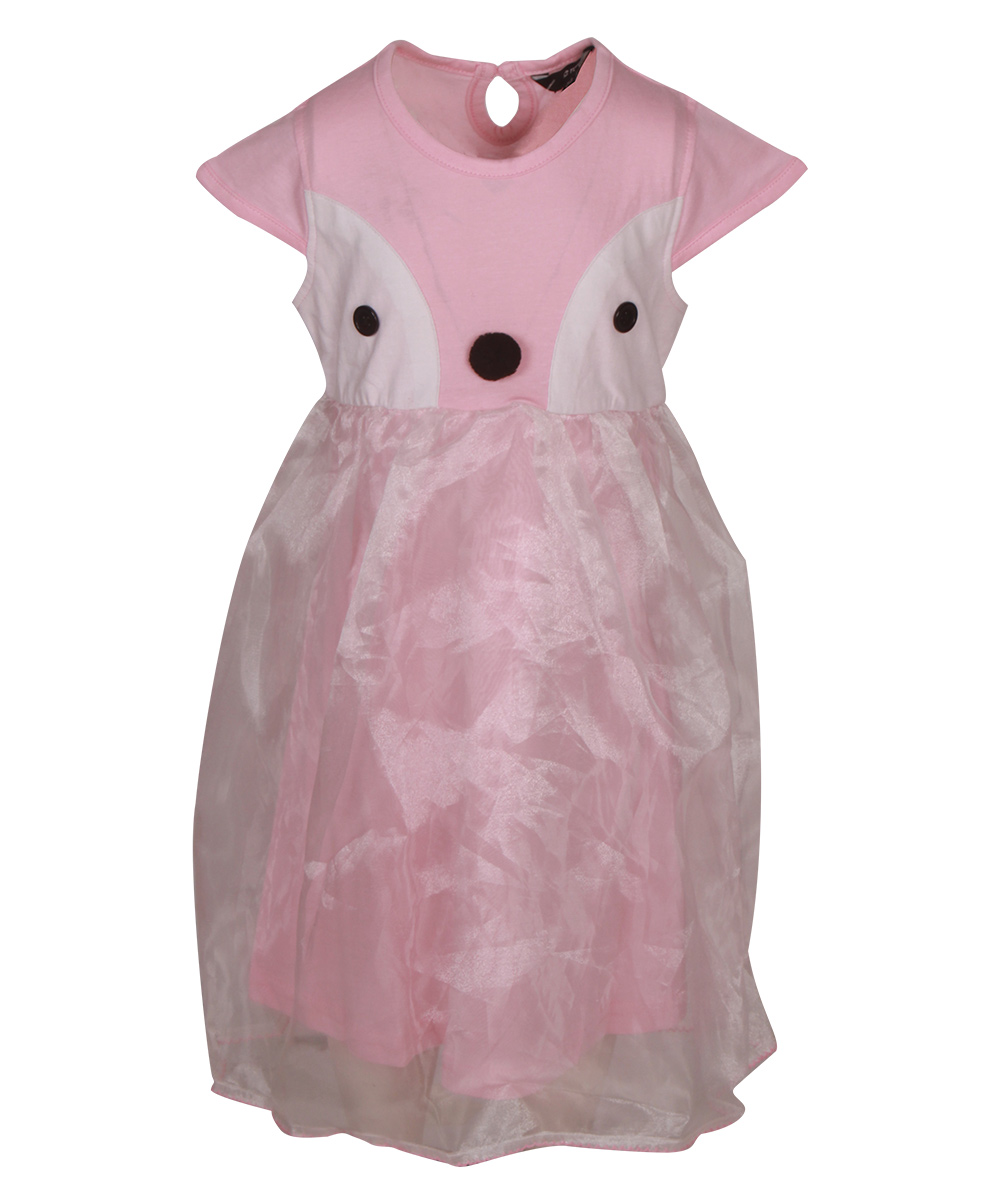 Pink penguin themed party frock crafted in cotton single jersey with a layer of organza. Embellished with front buttons, pompom and gathers on waistline.