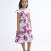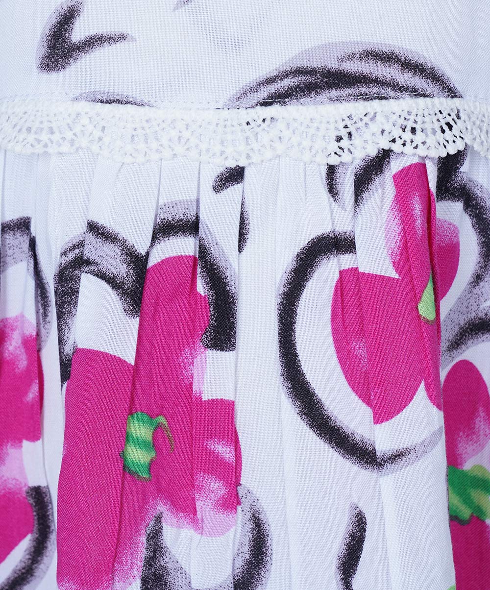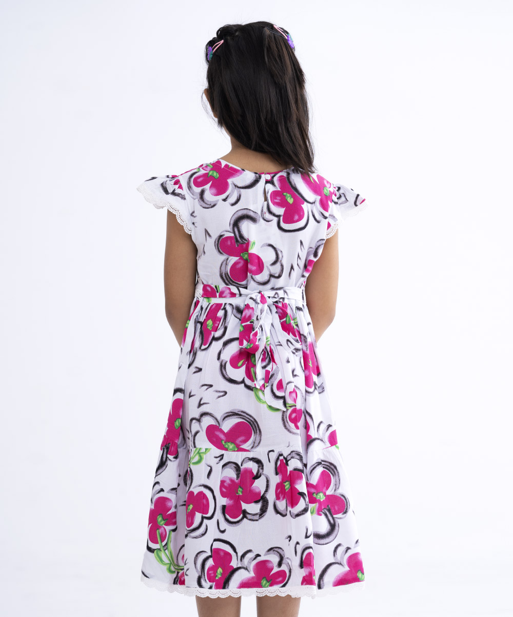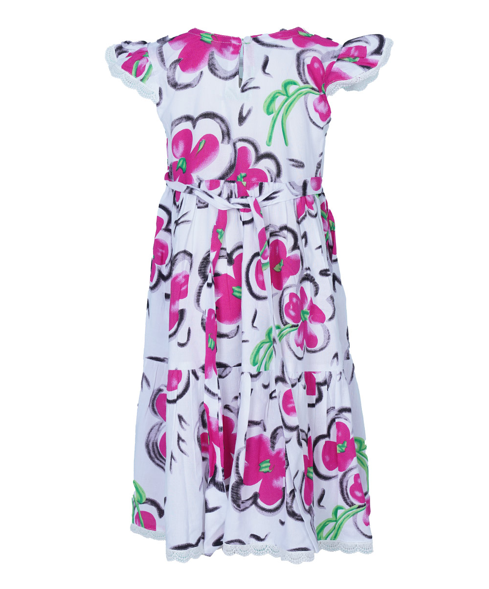 A-line frock with a round neck and cap sleeve, add frill from the hemline.