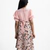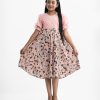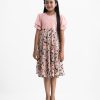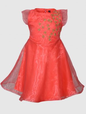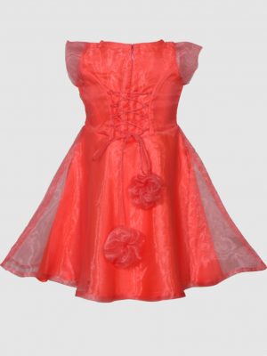 Kid girls A-line frock in georgette fabric. Round neck, short neck. diamond cut at the front and waist belt.