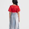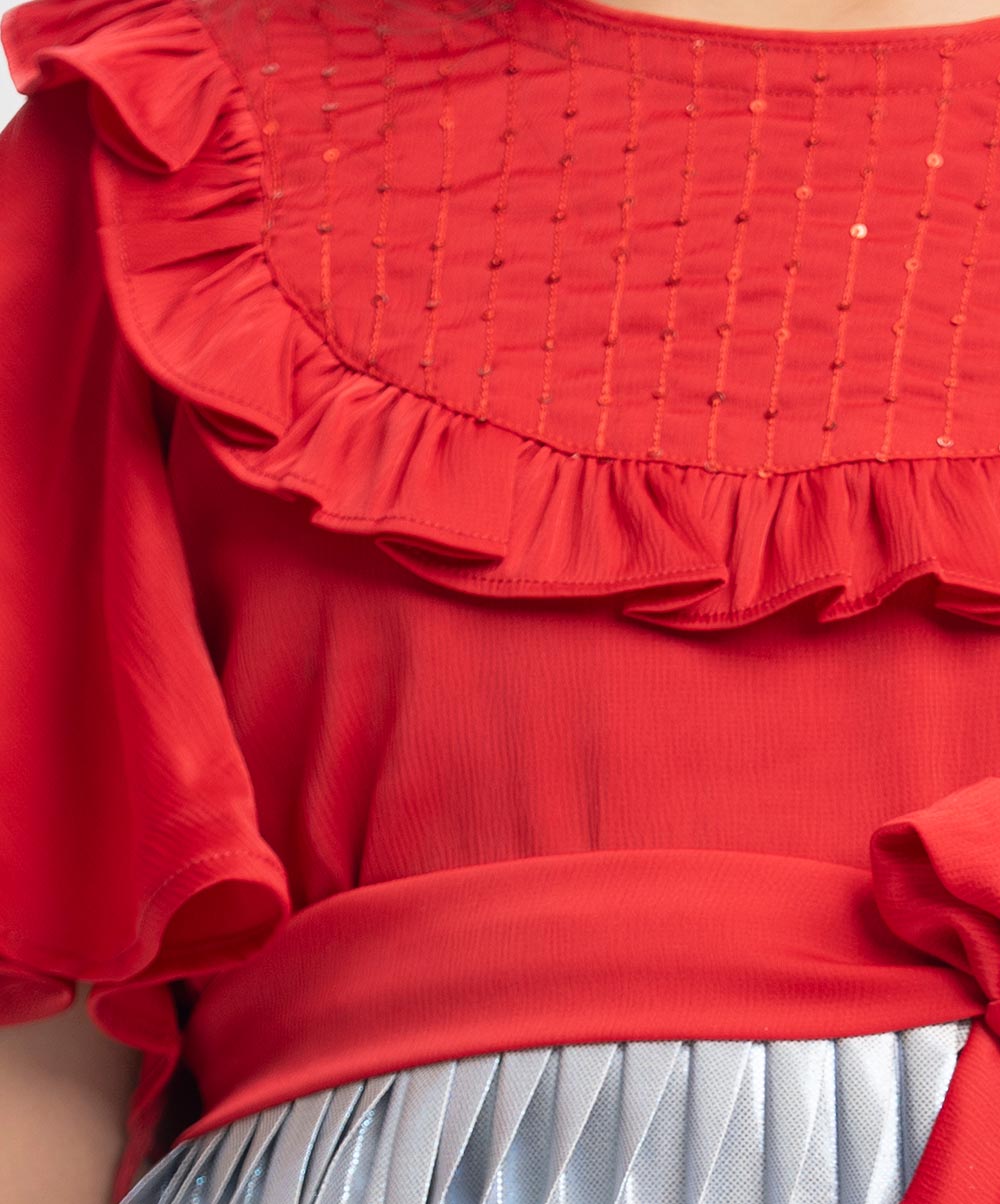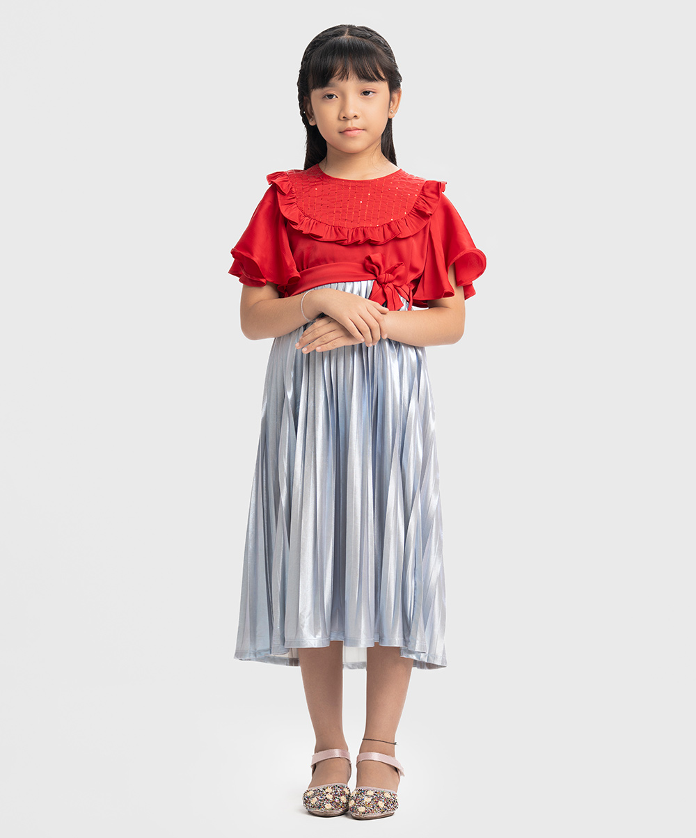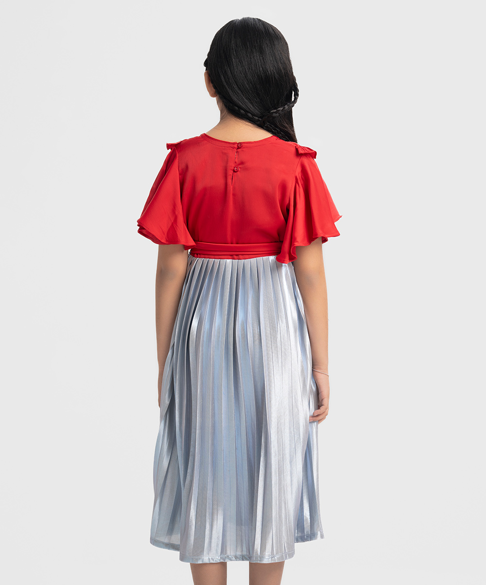 Red and Blue Georgette Pleated Frock