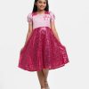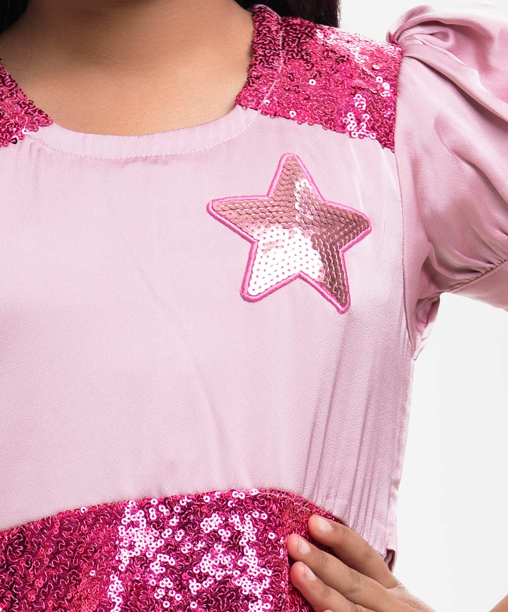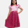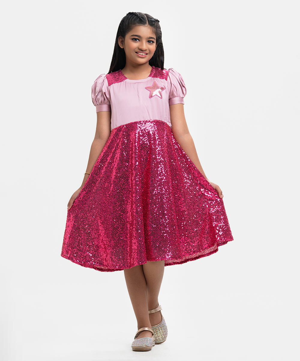 Pink Sequined A-line Party Frock