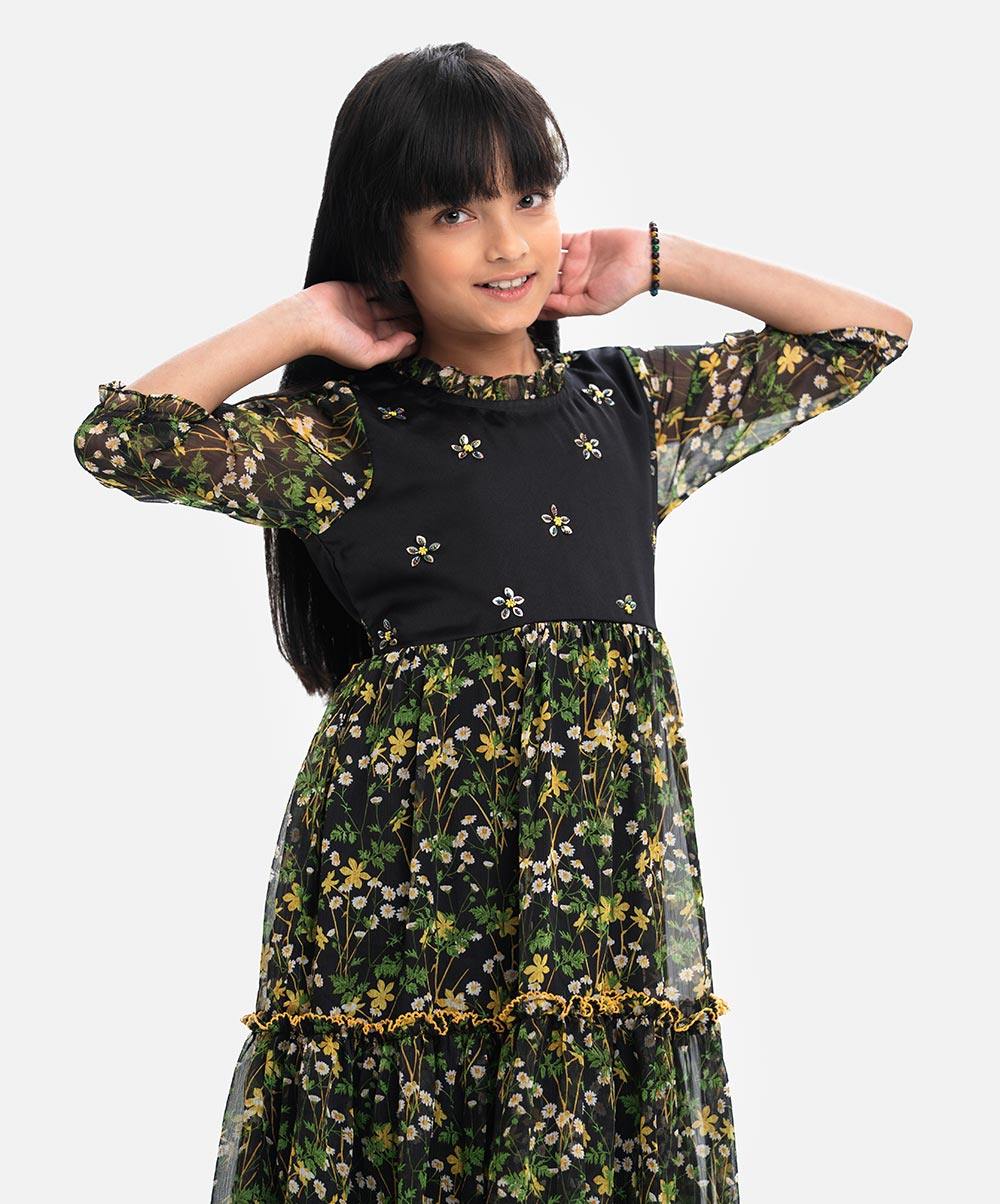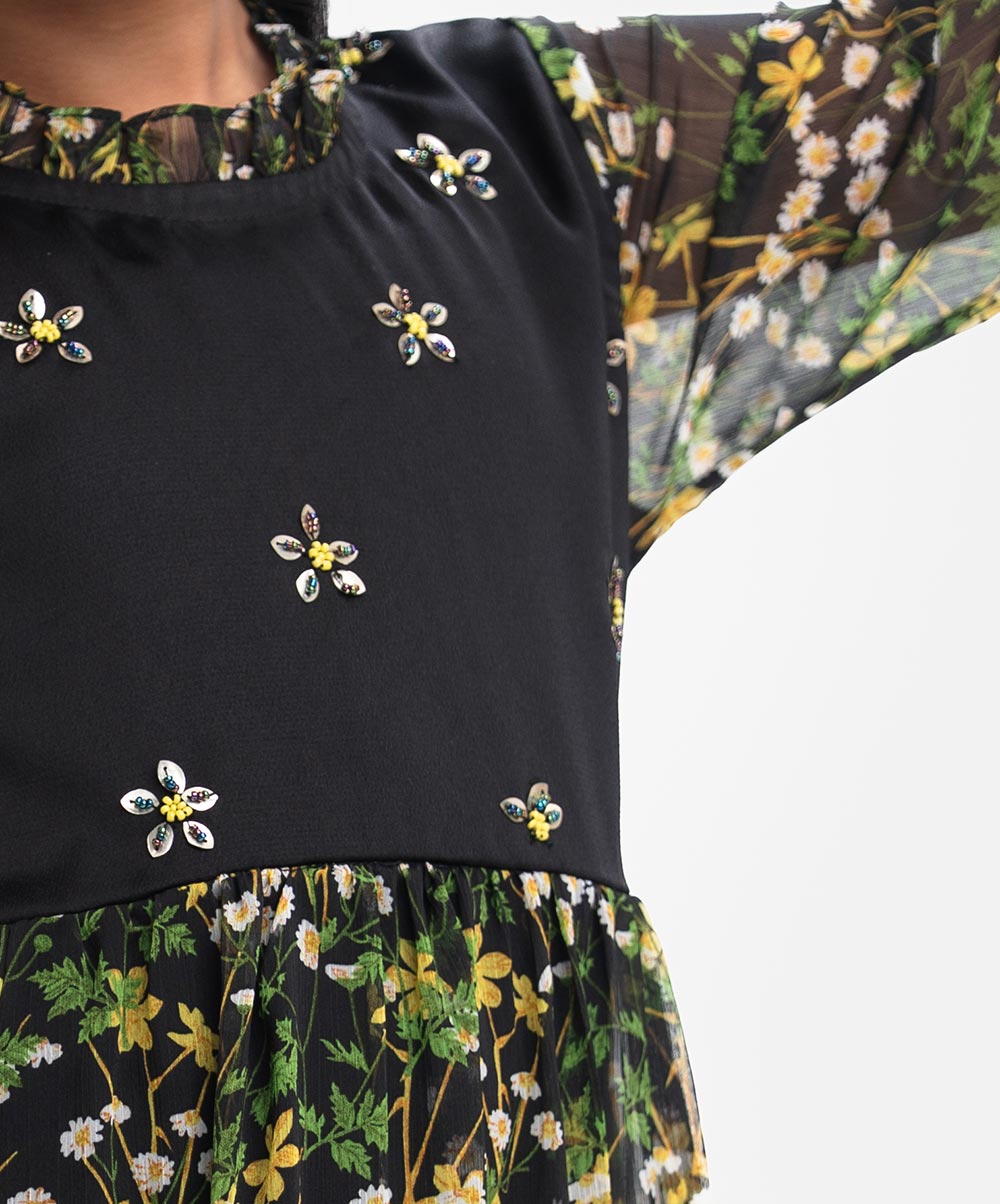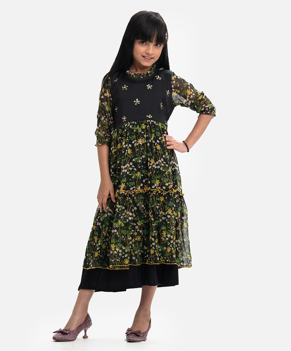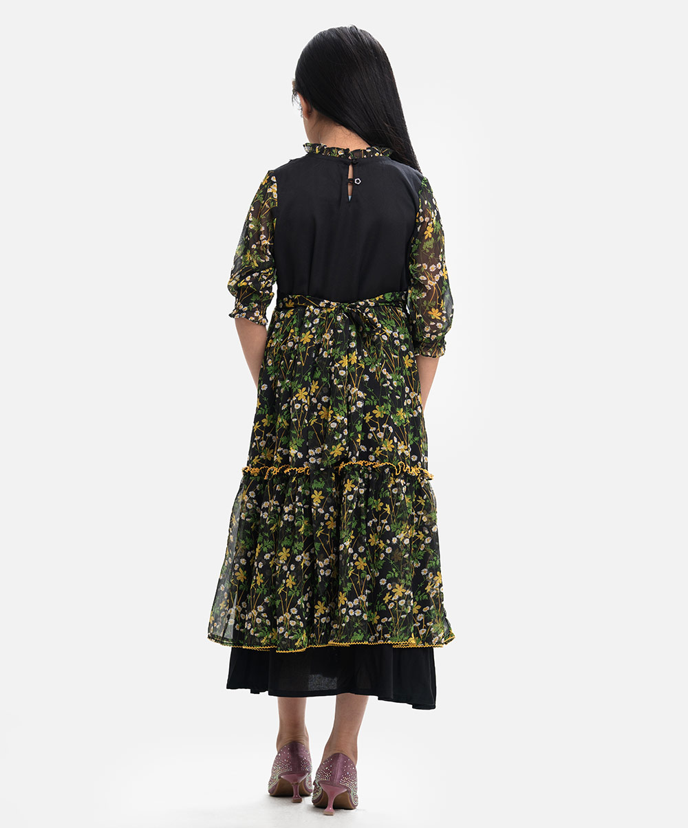 Black Georgette Layered Frock