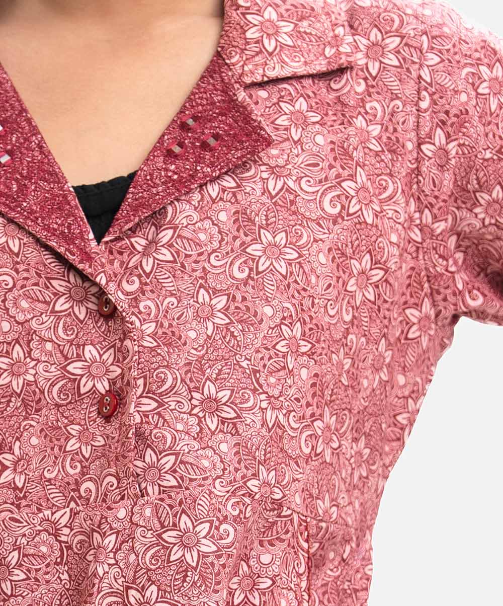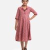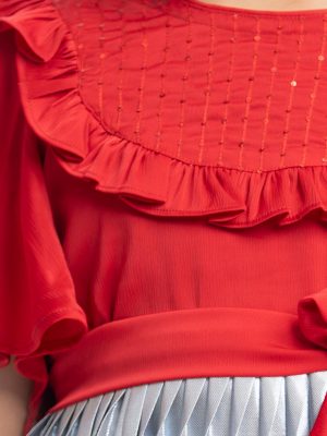 Red Blended Lapel Collar Frock