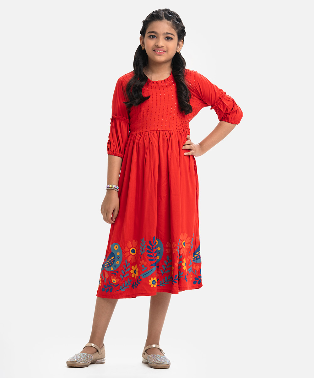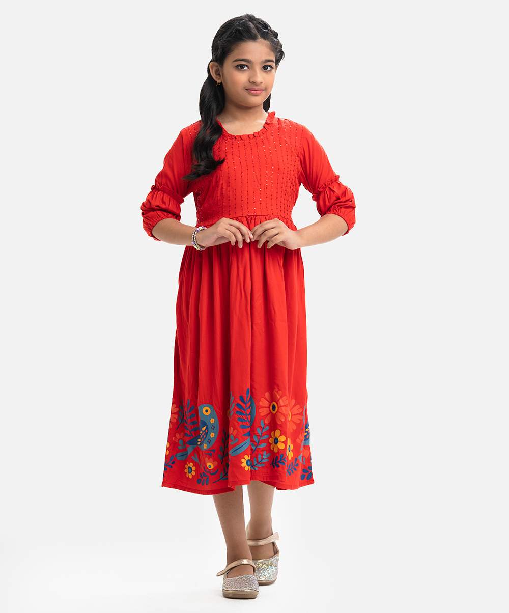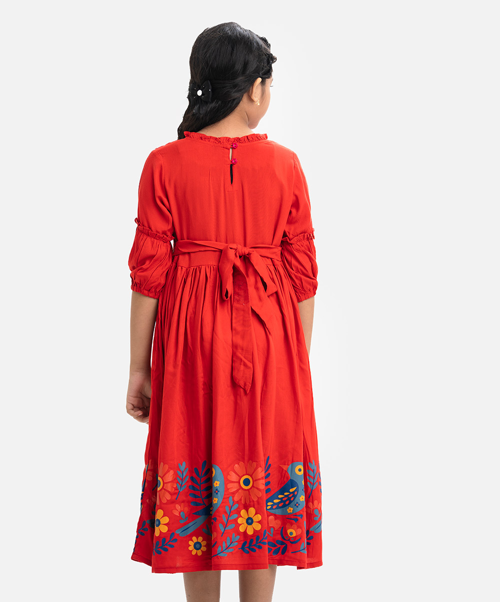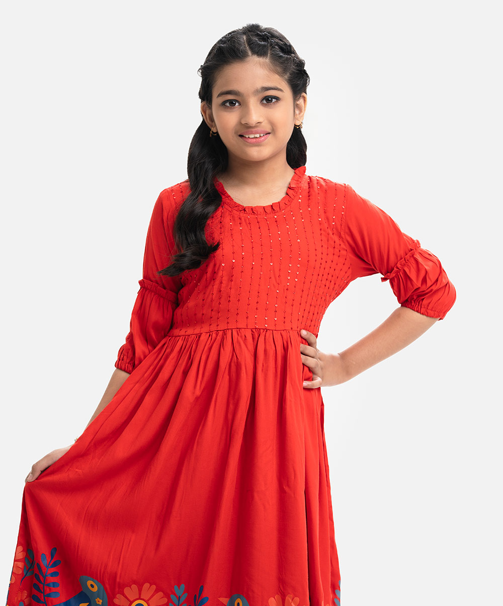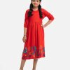 Red Viscose A-line Frock