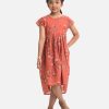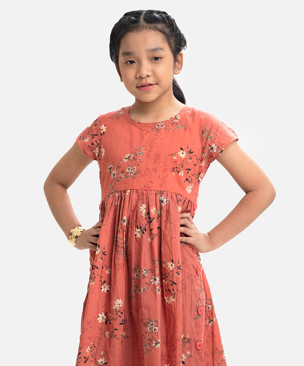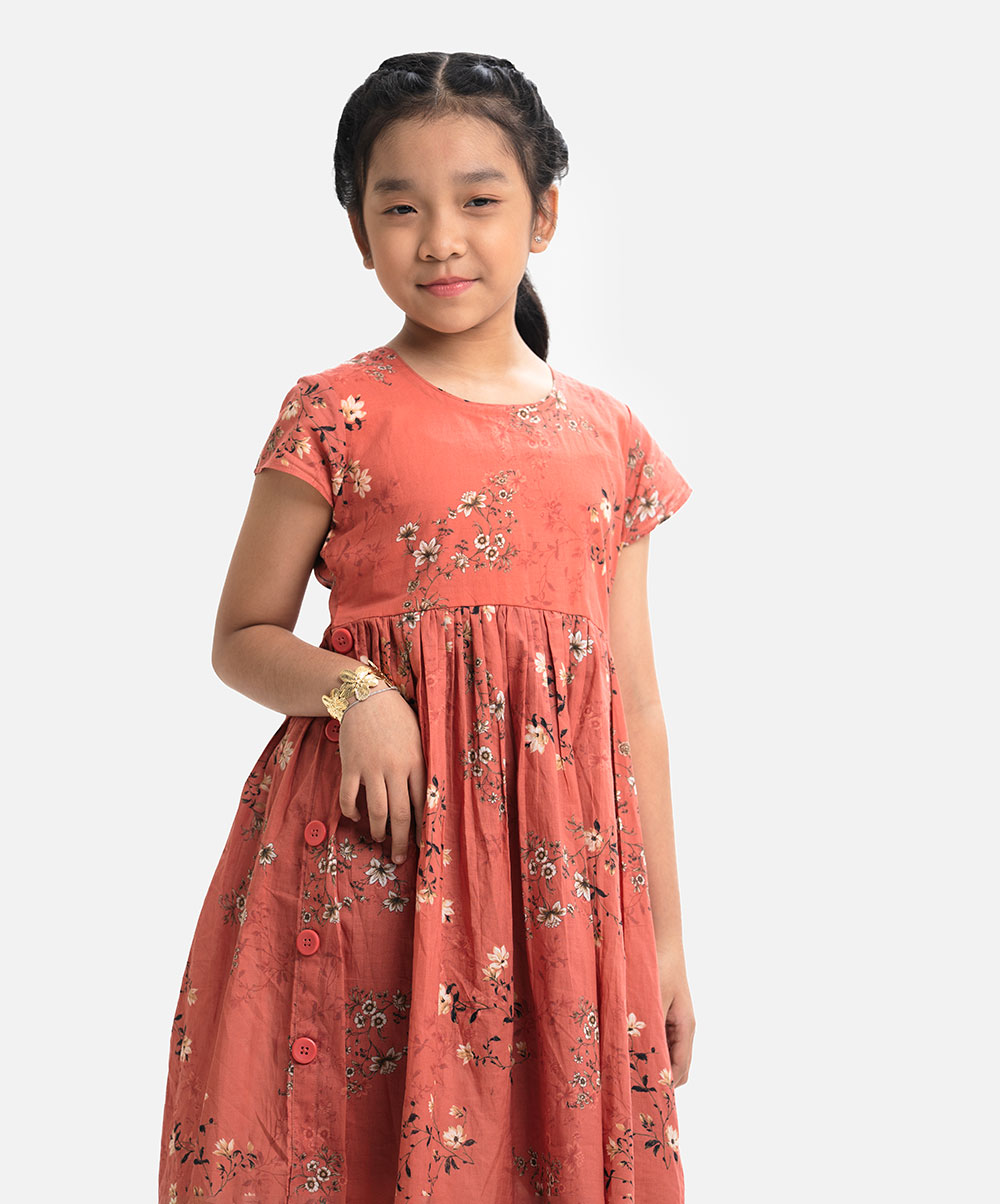 Round neck cotton frock with cap sleeves and stylish buttons on the side.