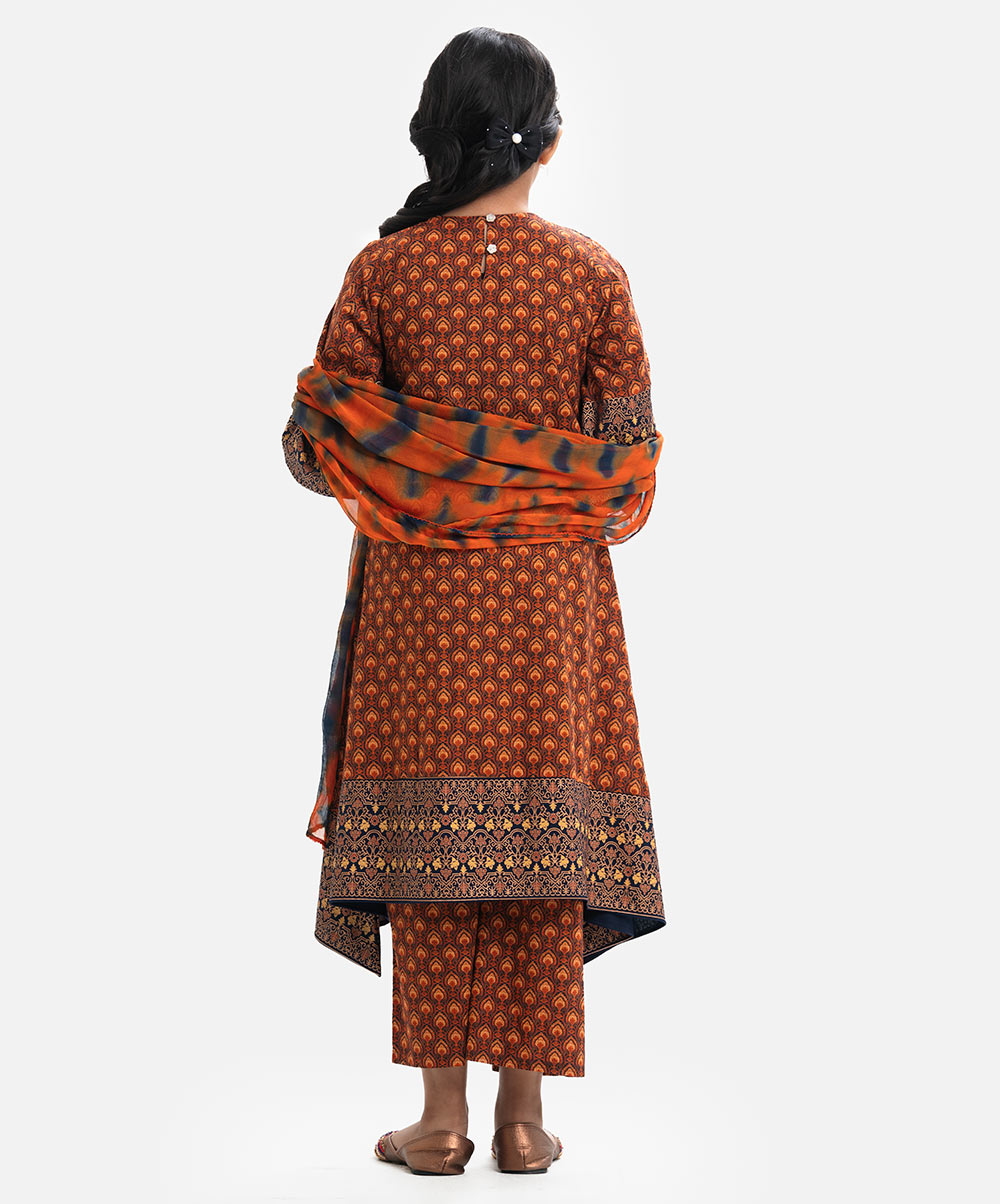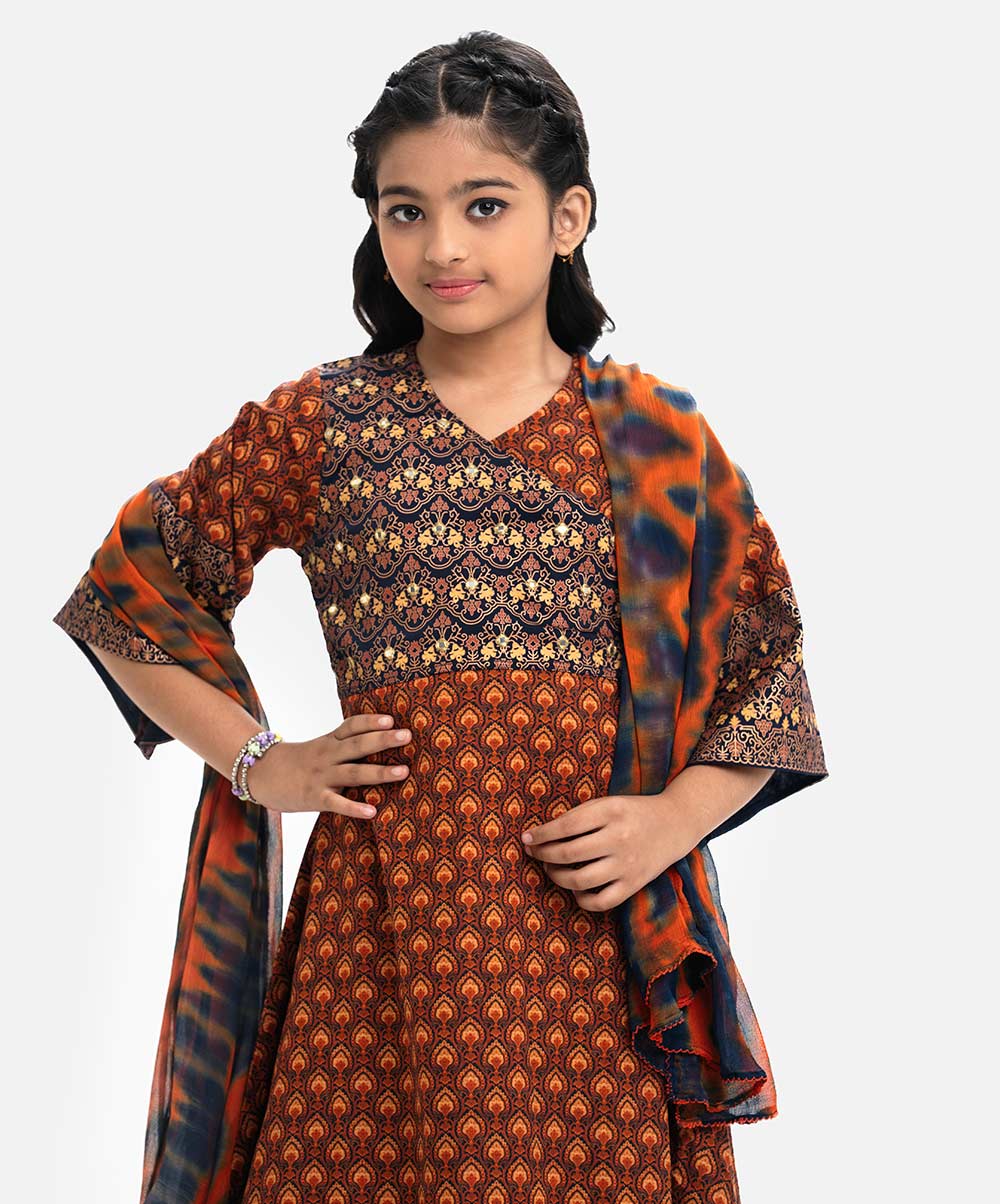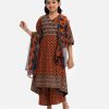 Brown Cotton A-line Salwar Kameez