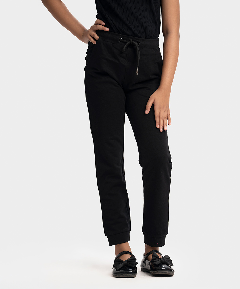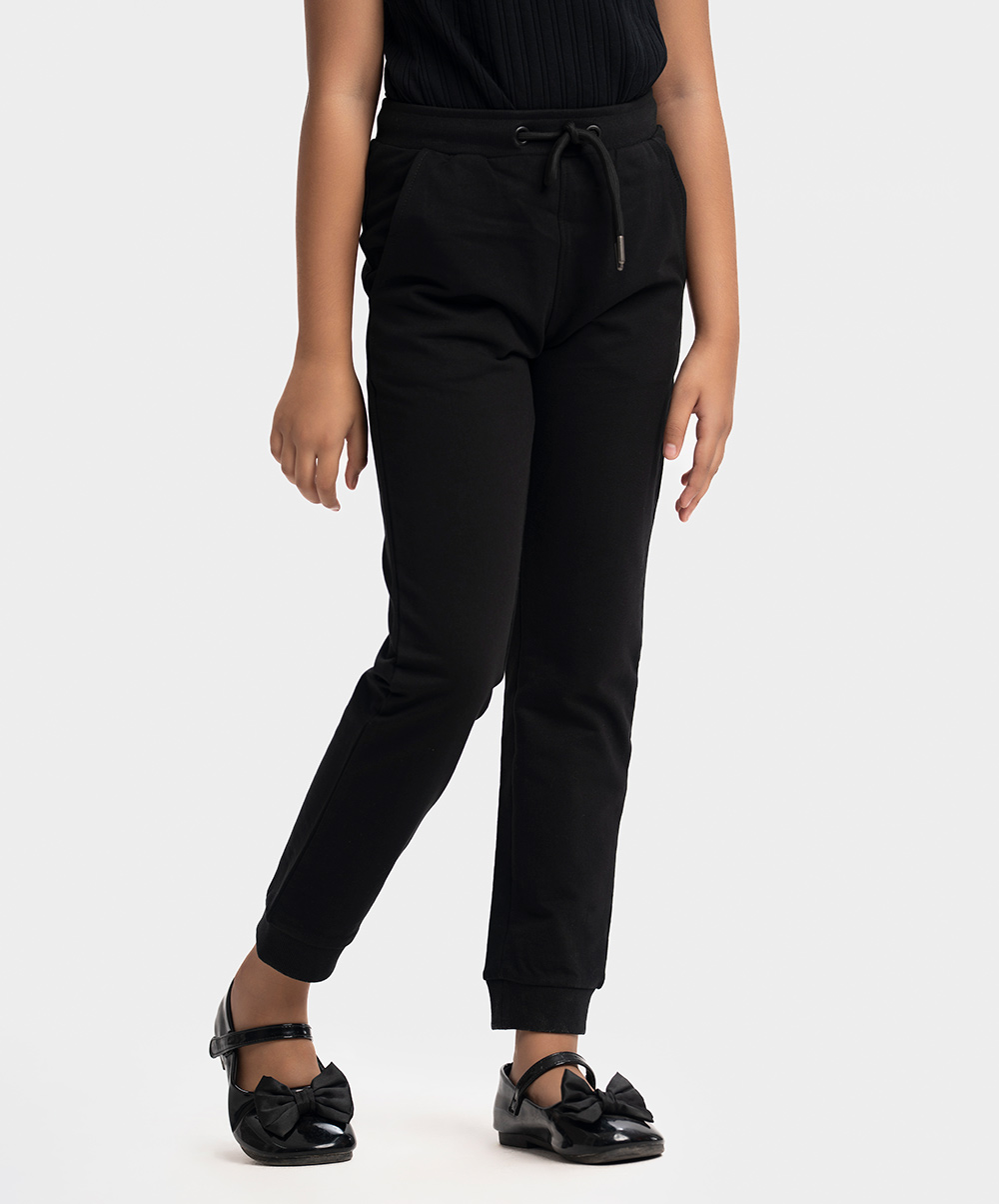 Kid girls sweatpants in French terry fabric. Elasticized, drawstring waistband and welt side pockets.