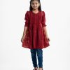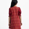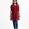 Kid girls tent-style A-line tunic in crepe fabric. Round neck, puff-sleeved. Smokey and gathered at the waistline. Button fastening at the front.
