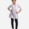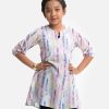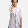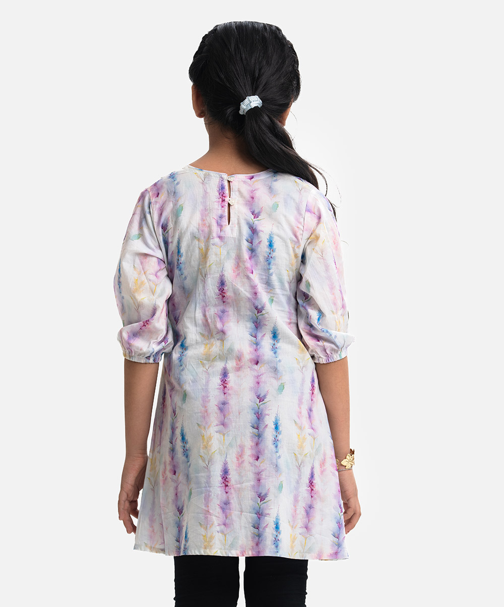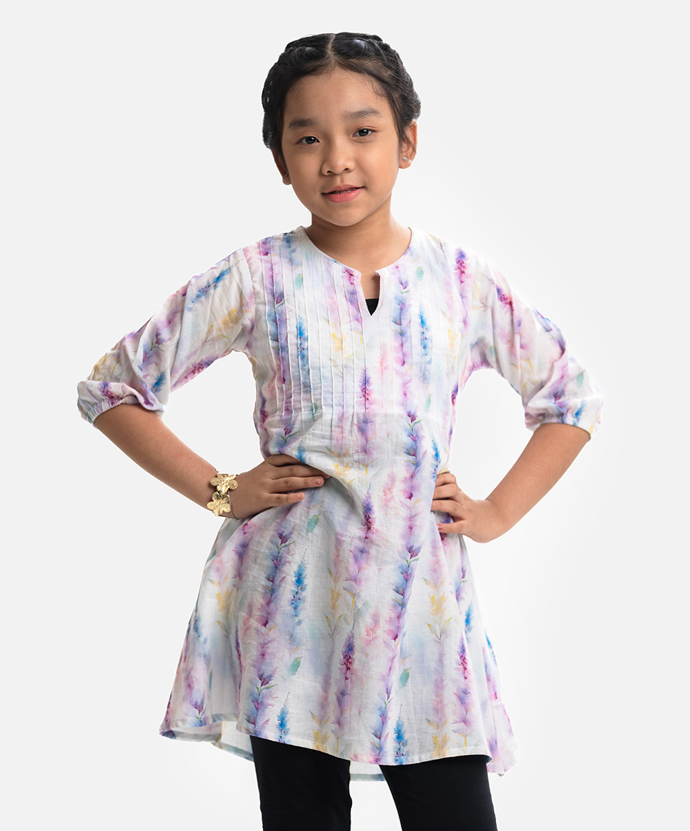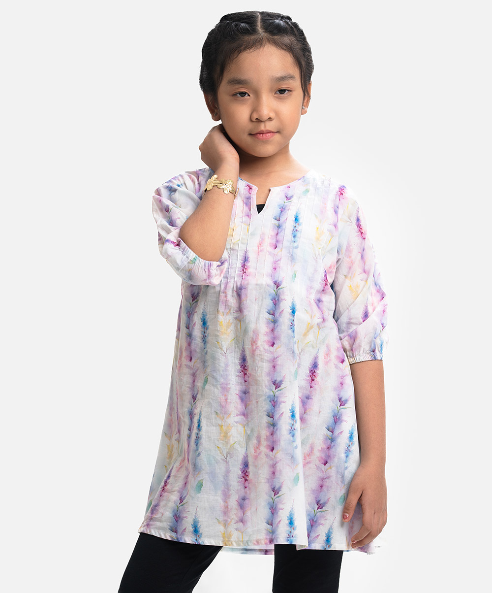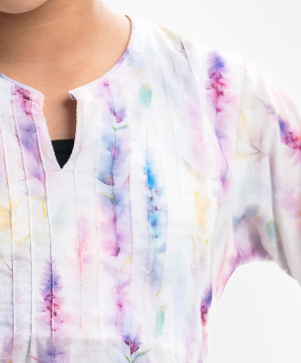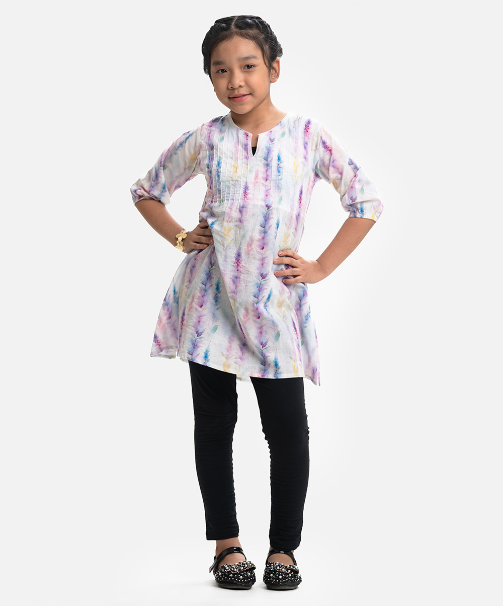 V-neck cotton tunic with three-quarter sleeves and pintuck at the front.