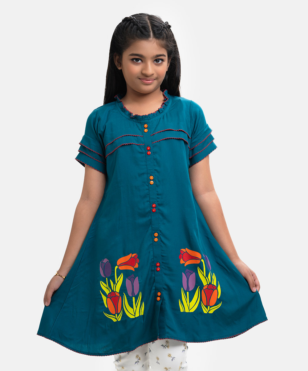 Teal Viscose Kids Tunic