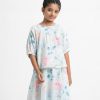 Kid girls’ floral printed woven set in georgette fabric with cotton lining. Bat-wing sleeves, round neck, and all over sequin details on the top.Comes with a matching skirt at the bottom.