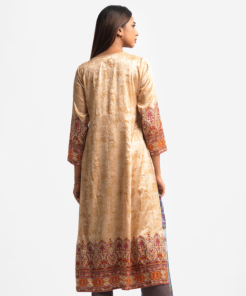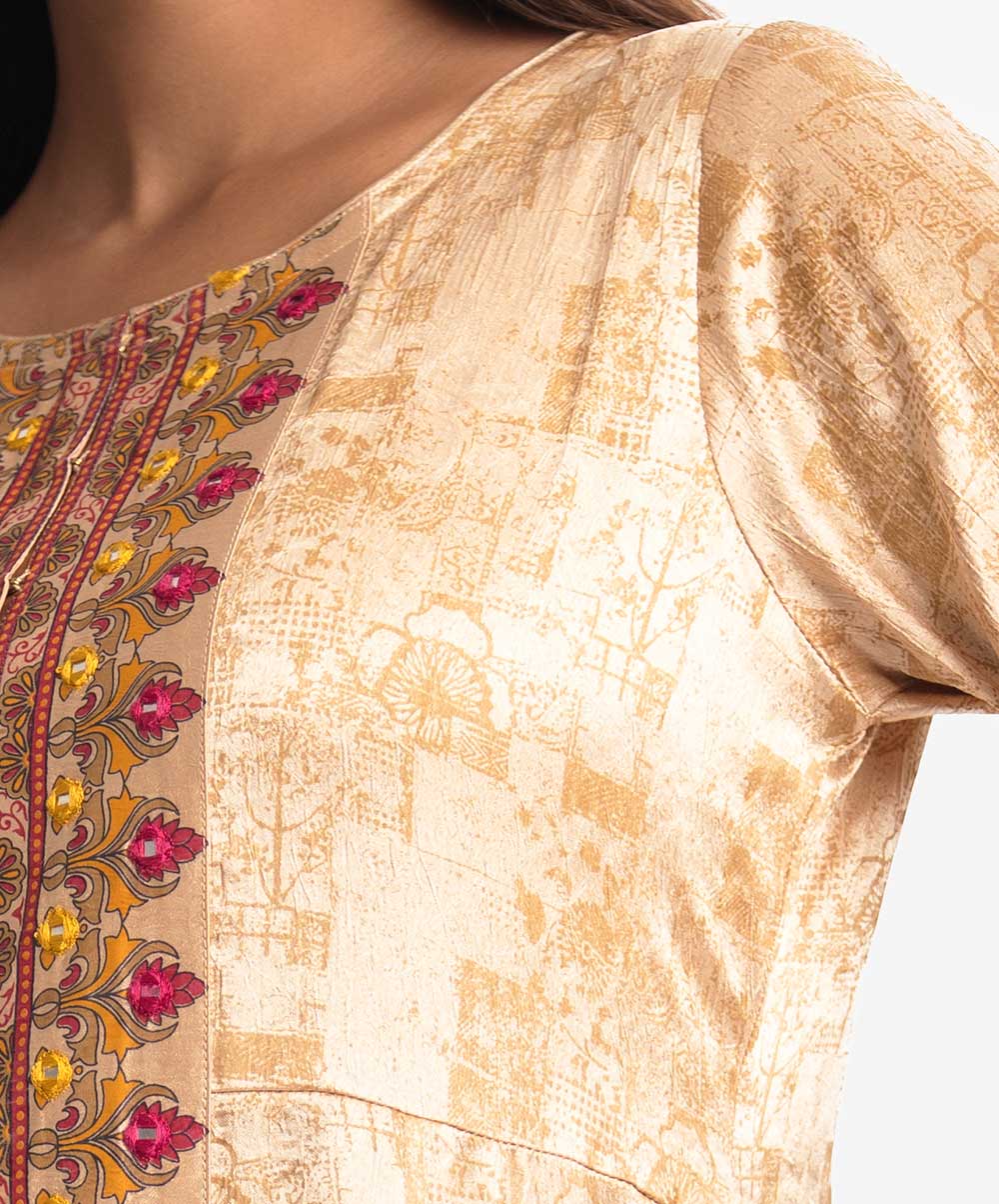 Golden Satin Georgette Abaya-style Gown