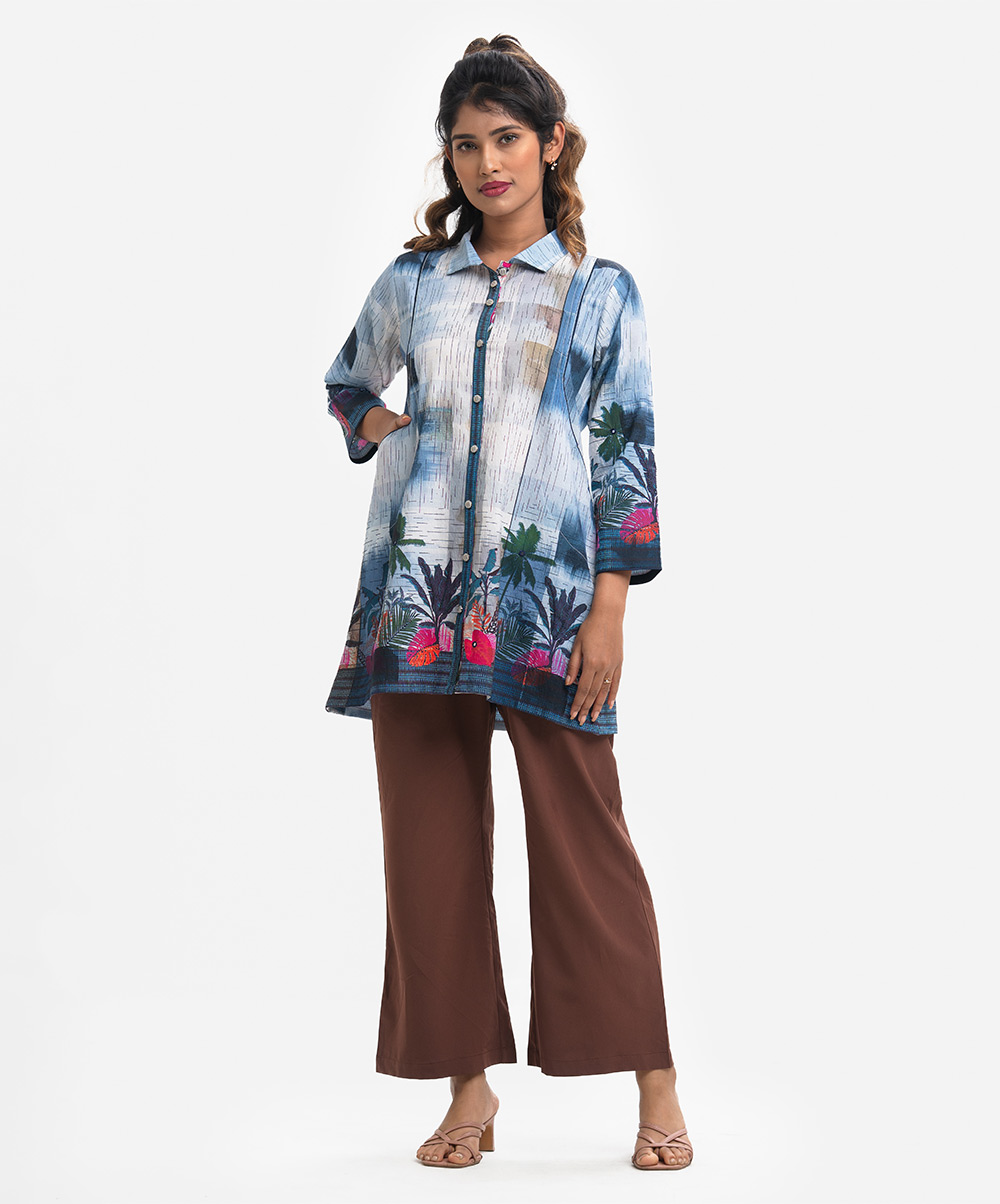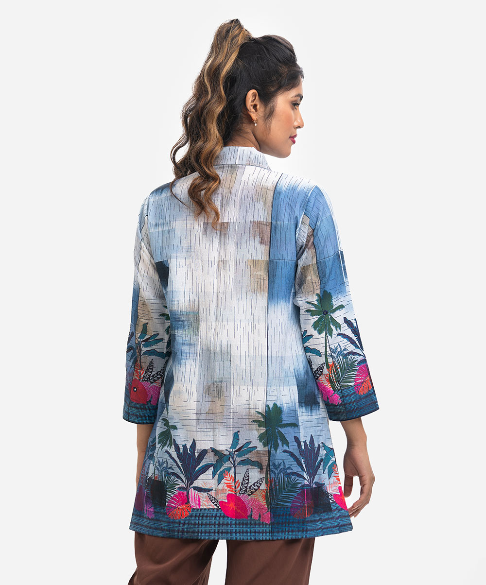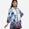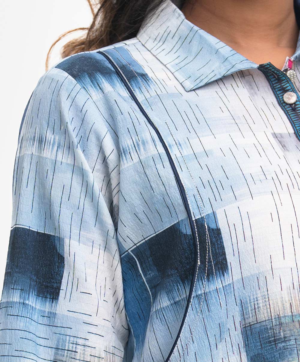 Blue Cotton-blend Abaya-style Shirt
