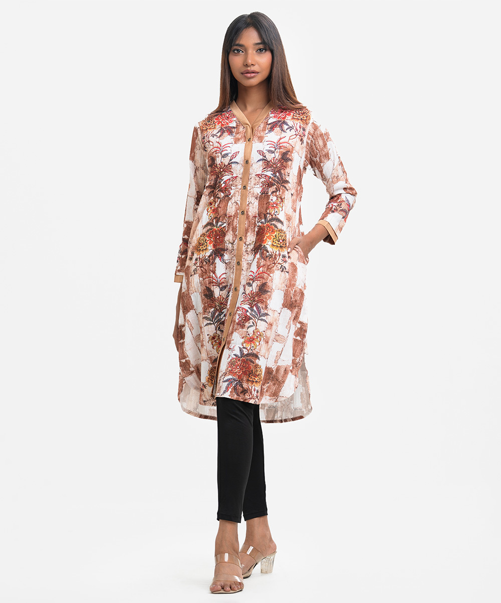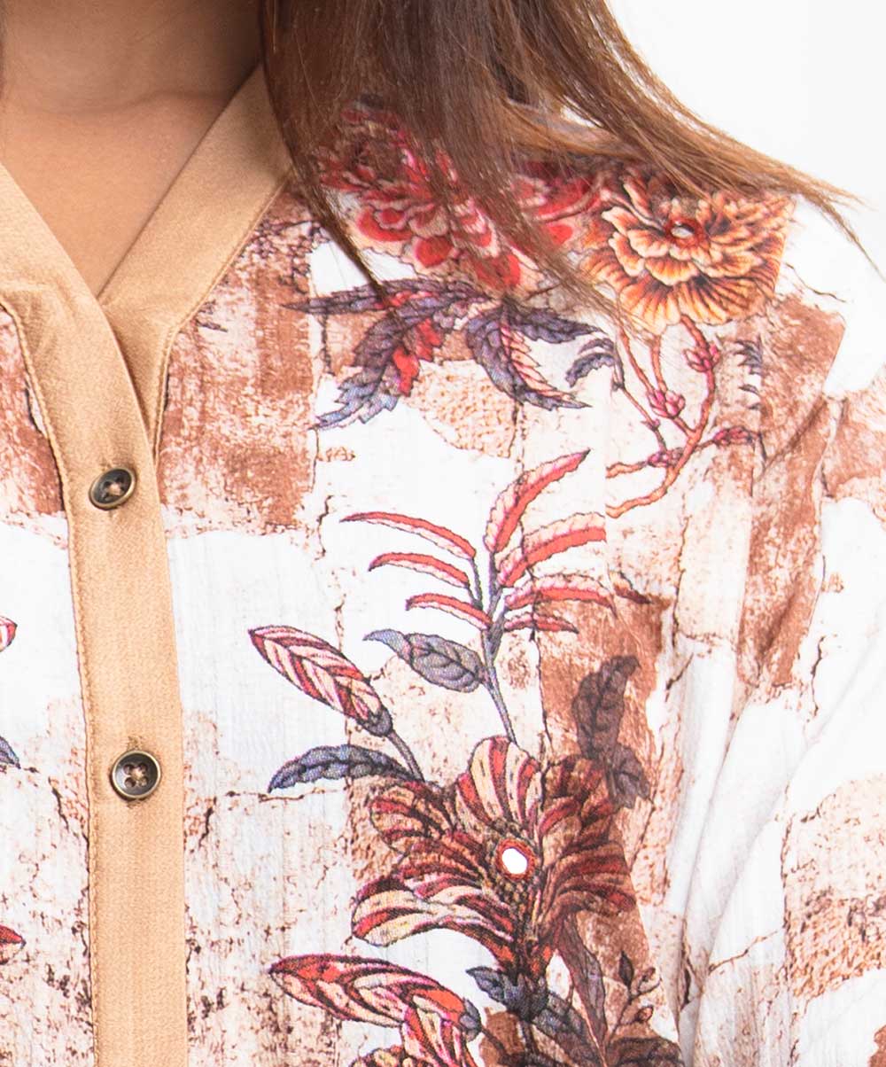 Brown Crepe Viscose Shirt-style Abaya