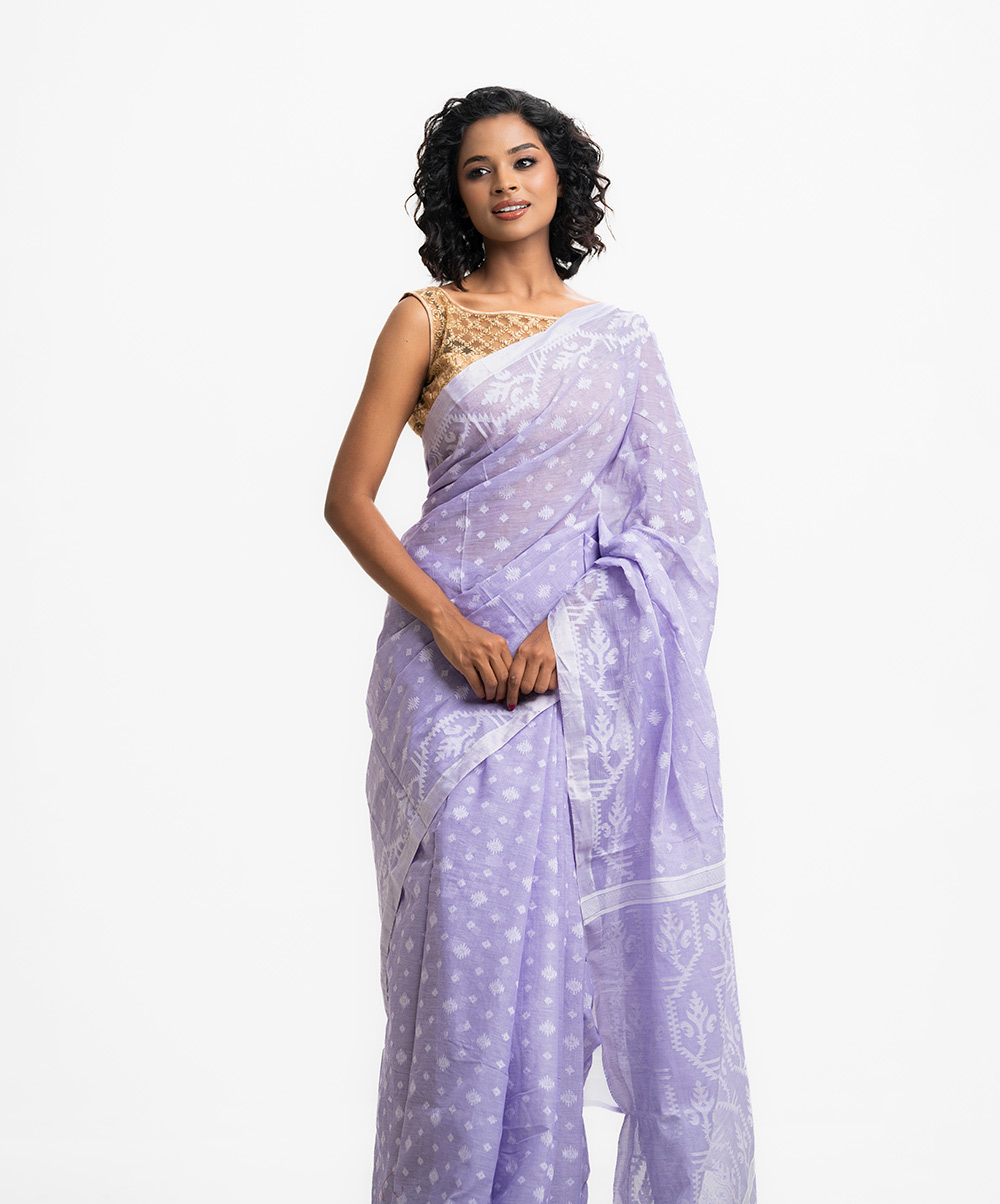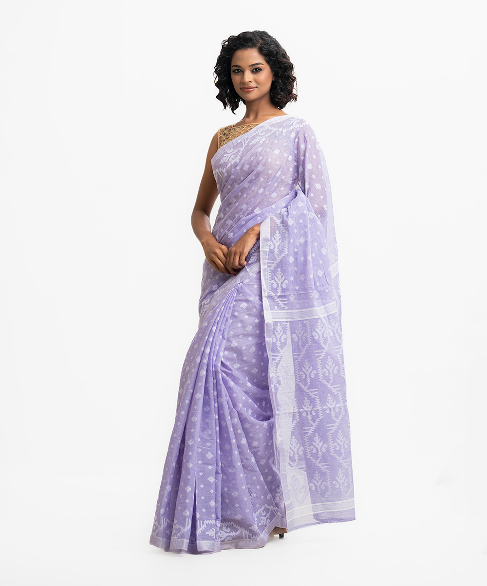 All-over jamdani pattern weaving details saree in cotton fabric.