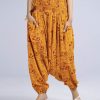 Yellow basic harem in Viscose fabric with all-over print.