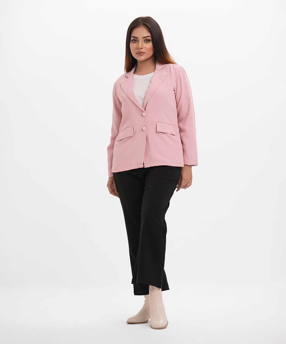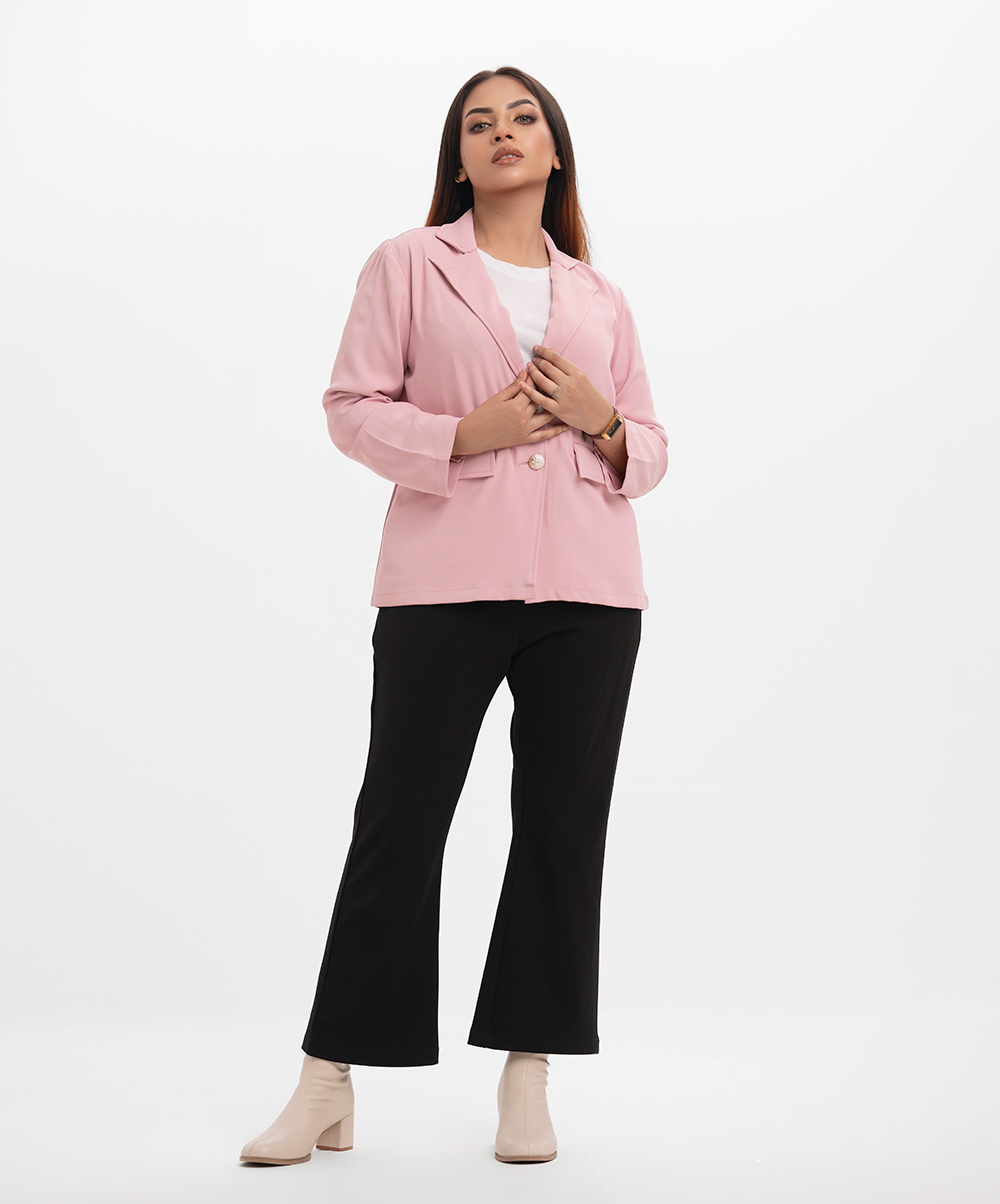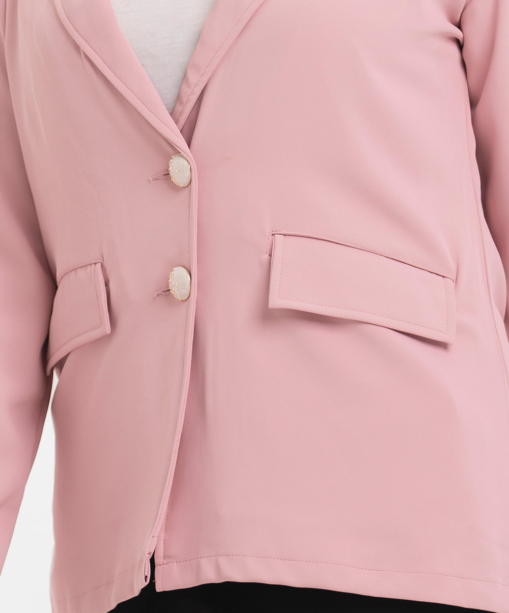Women’s single-breasted blazer in tencel fabric with taffeta fabric lining. Full-sleeved, lapel collar. Two front flap pockets.