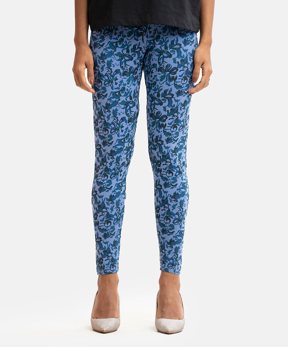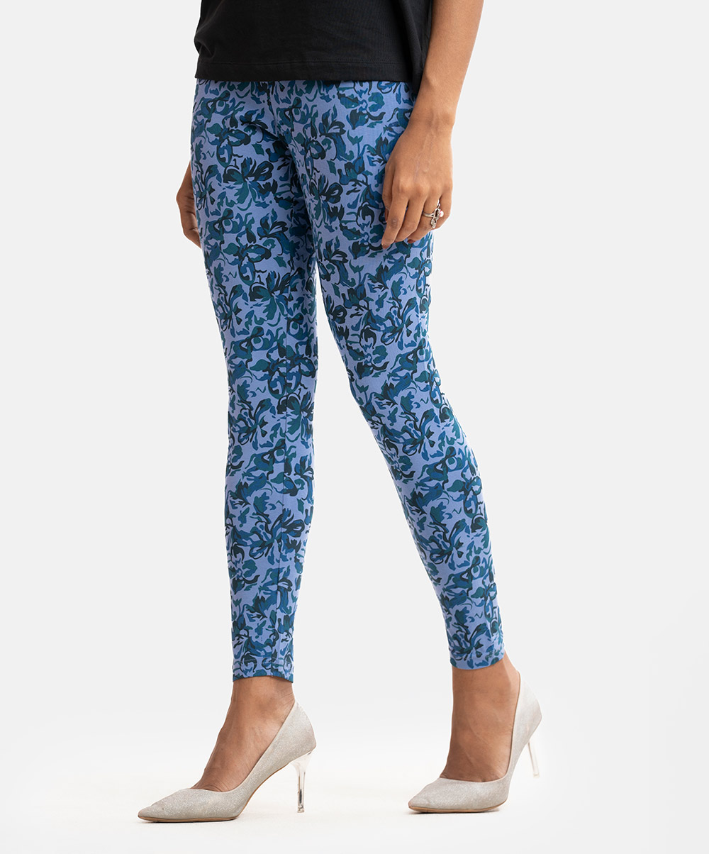 Women’s printed leggings in stretchable cotton knit fabric. Concealed elasticated waistline.