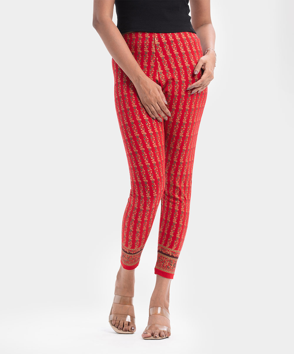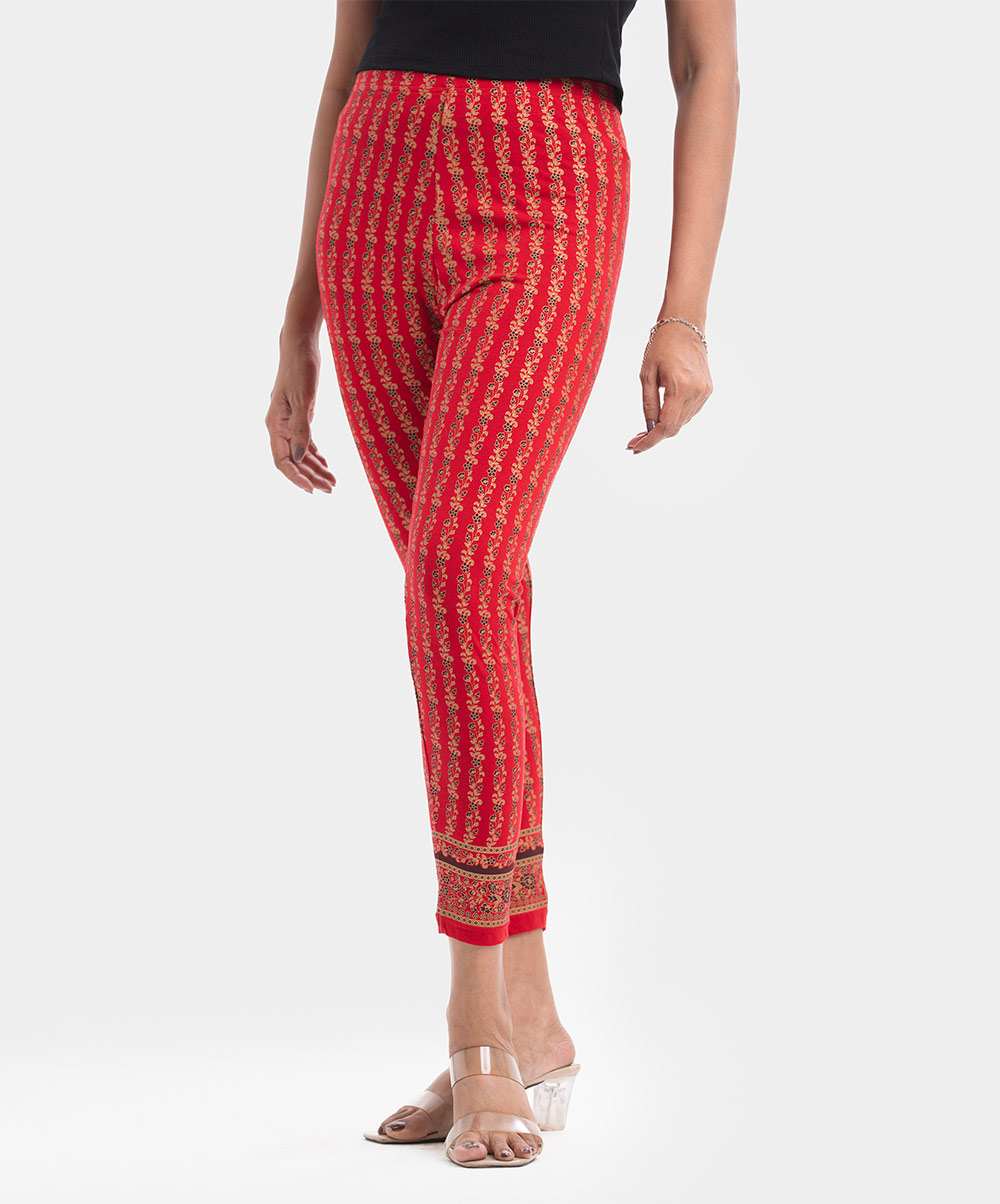 Women’s all over printed leggings in stretchable cotton knit fabric. Concealed elasticated waistline