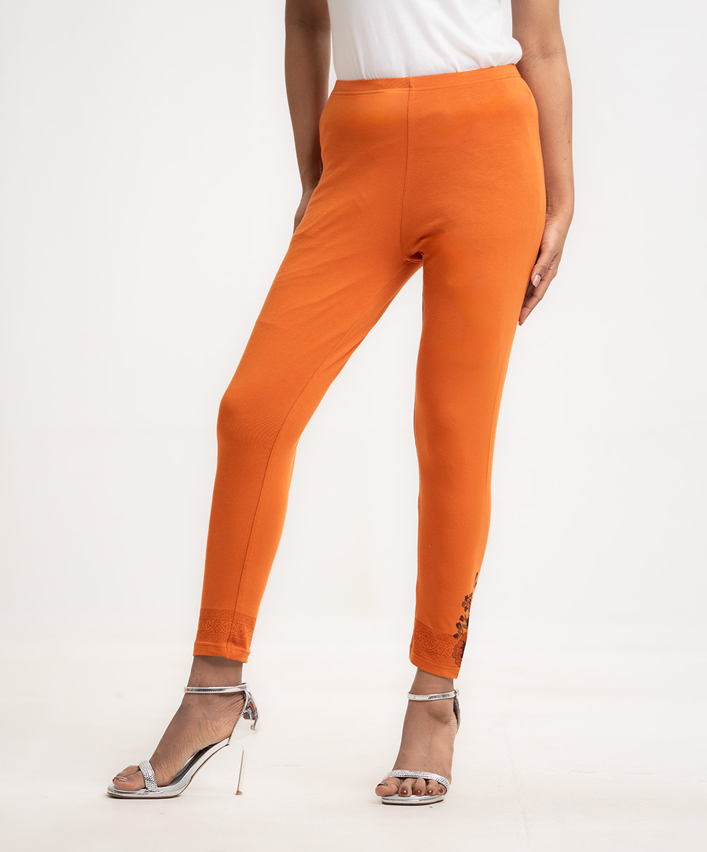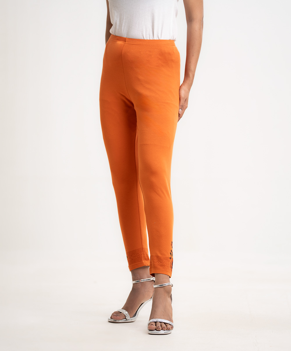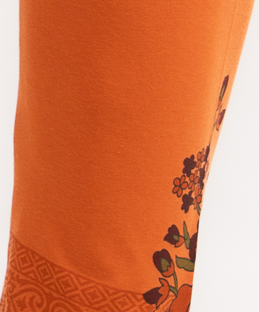Women’s leggings in stretchable cotton knit fabric. Concealed elasticated waistline and print at cuff.