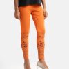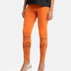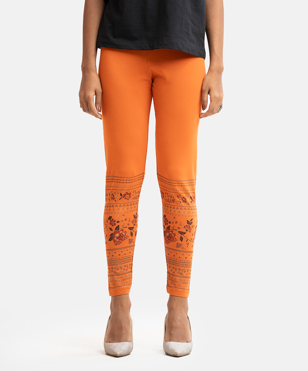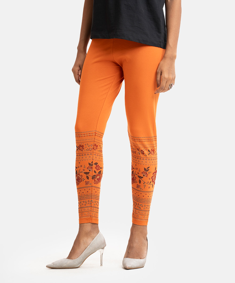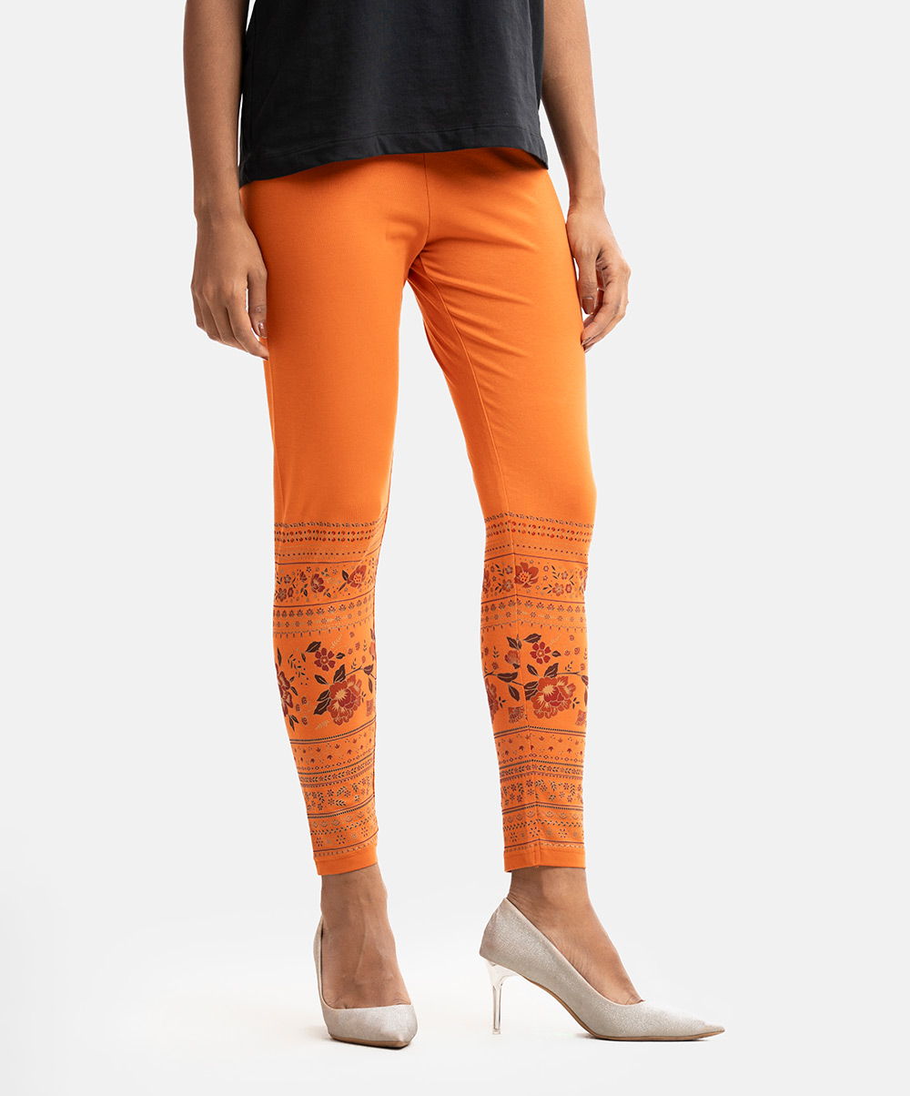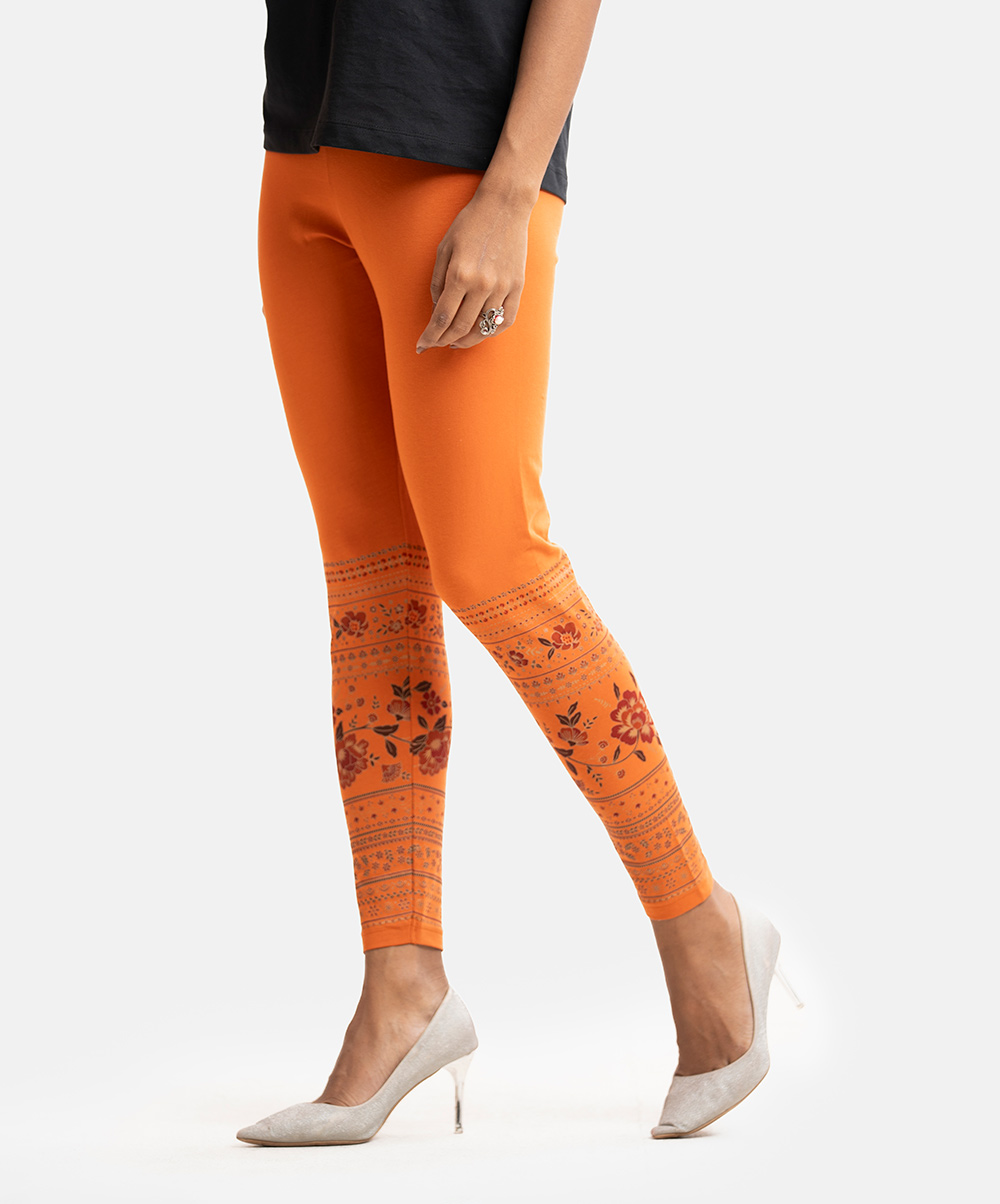 Women’s leggings in stretchable cotton knit fabric. Concealed elasticated waistline and print at cuff.