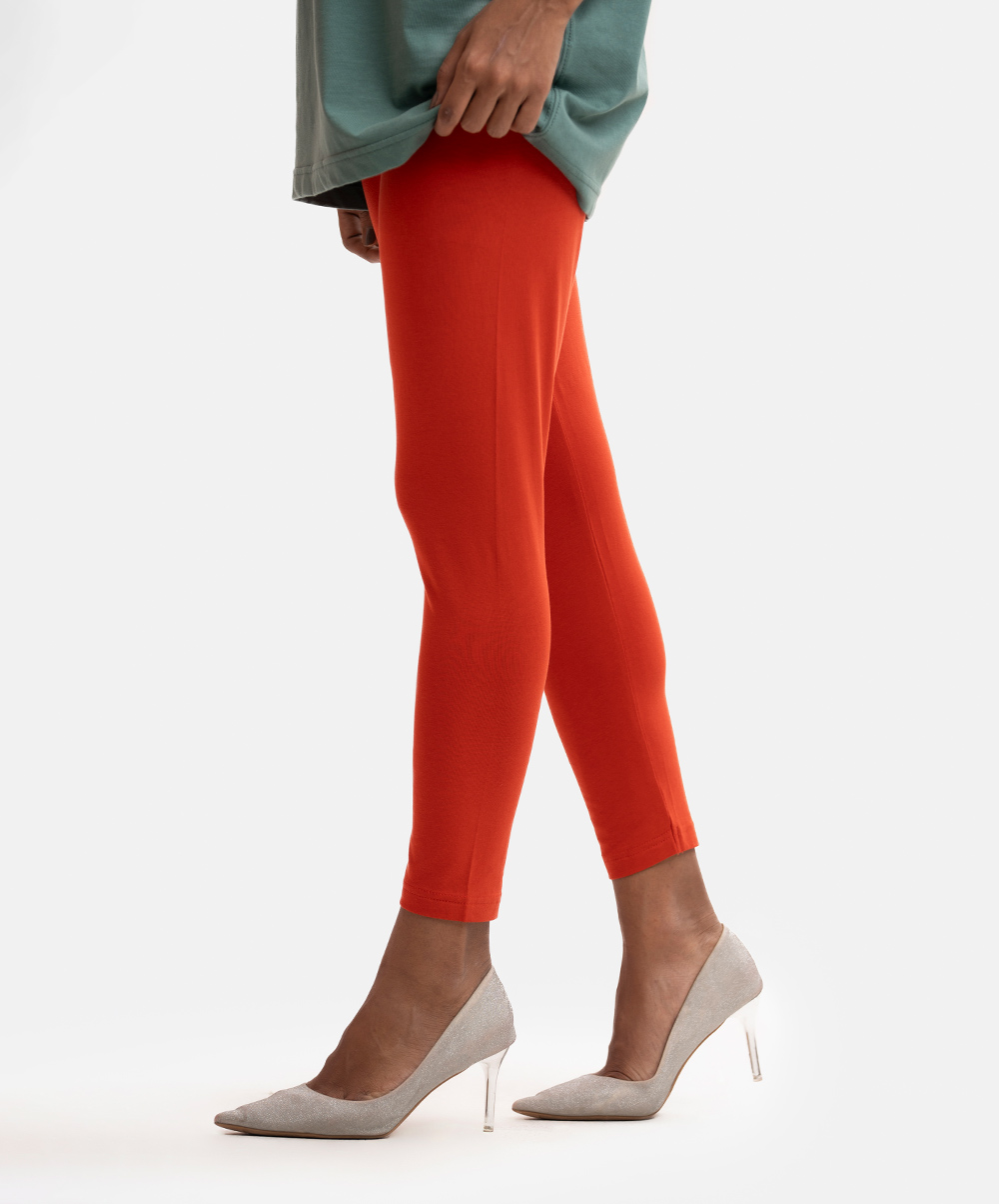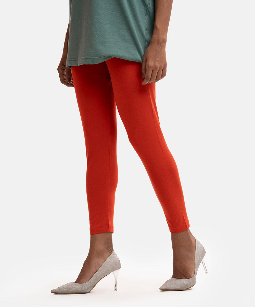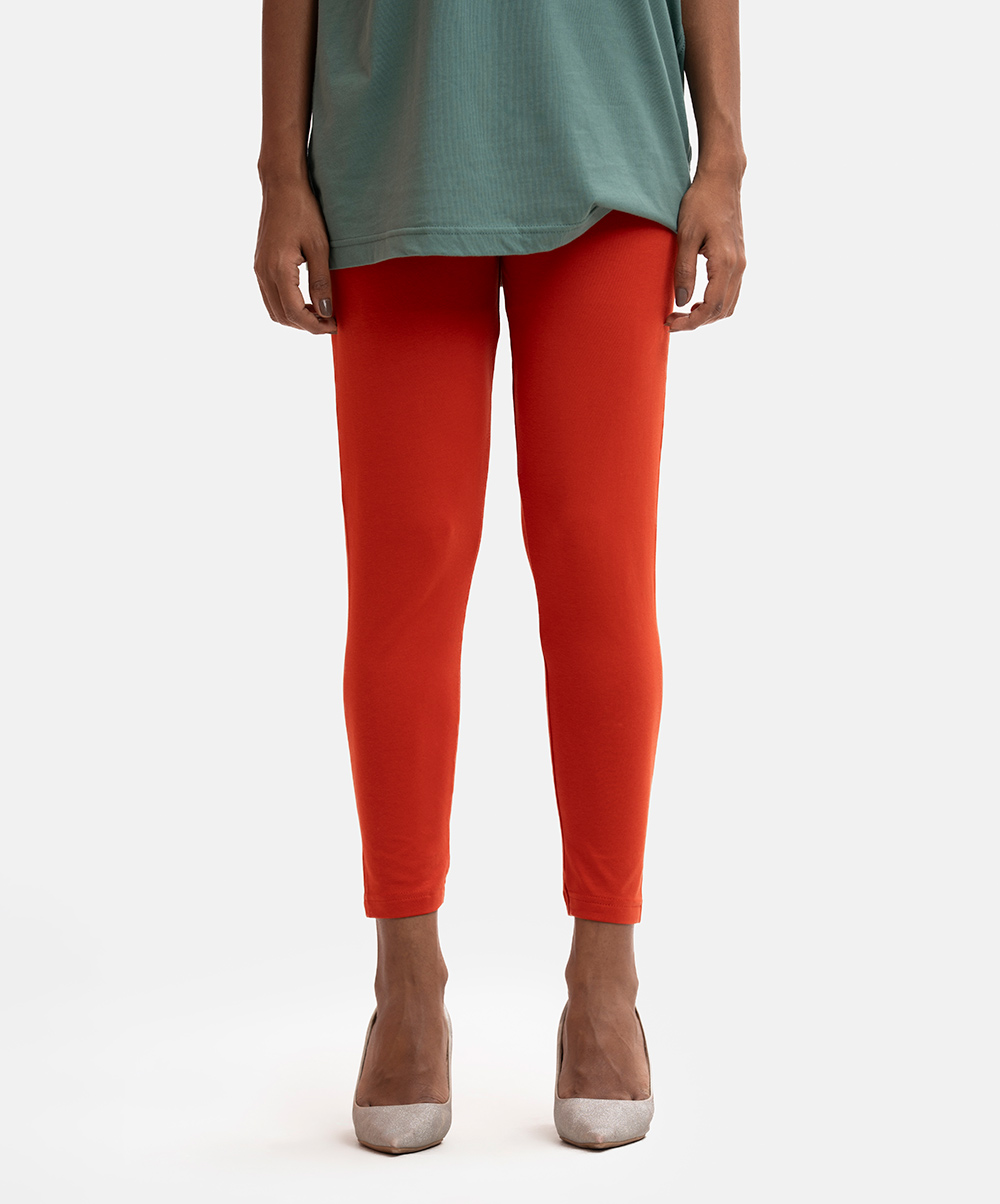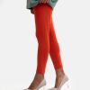 Women’s leggings in stretchable cotton knit fabric. Concealed elasticated waistline.