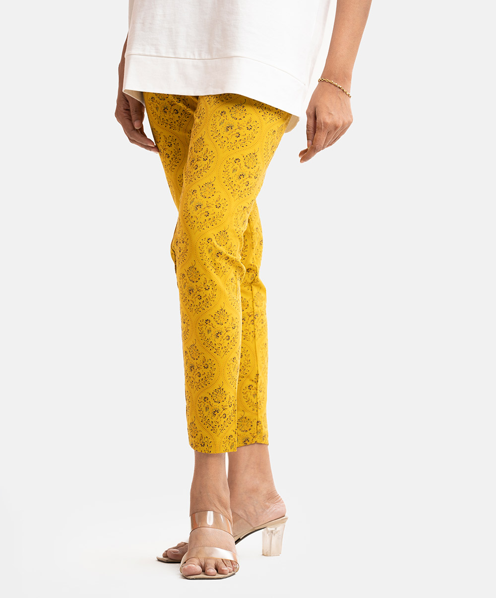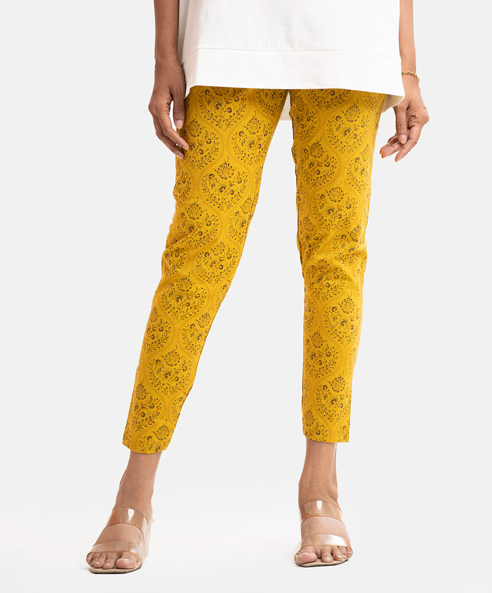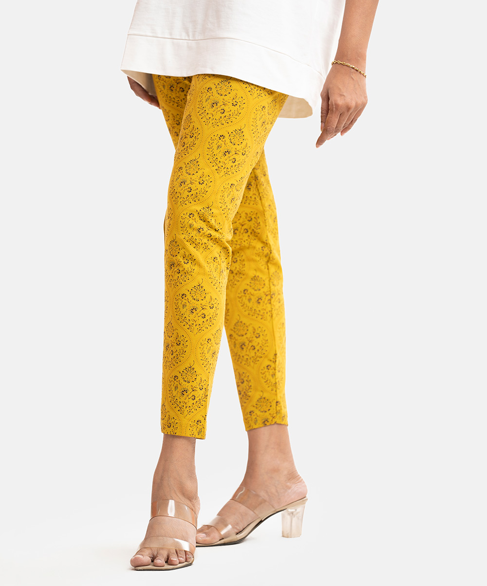 Women’s printed leggings in stretchable cotton knit fabric. Concealed elasticated waistline.