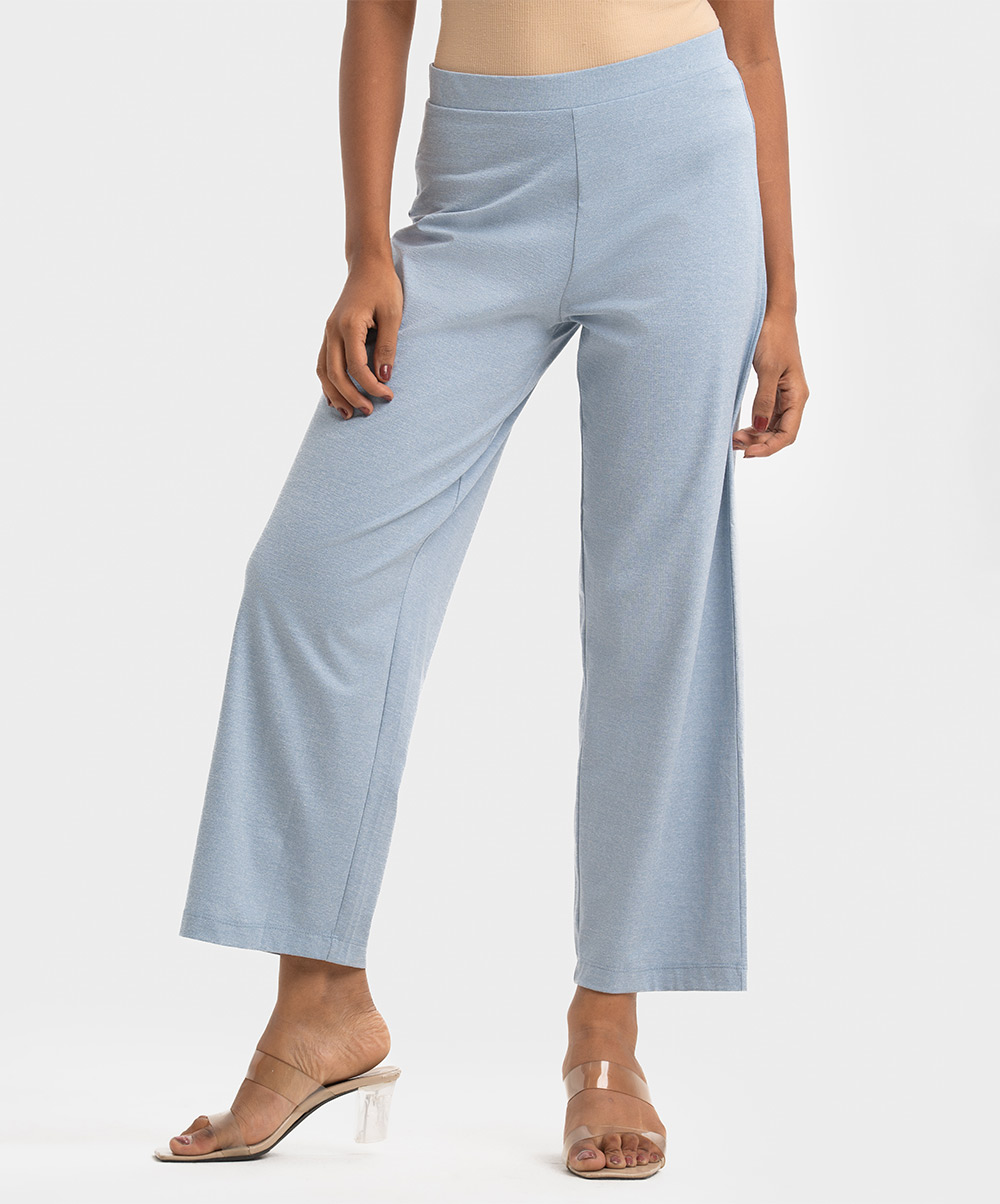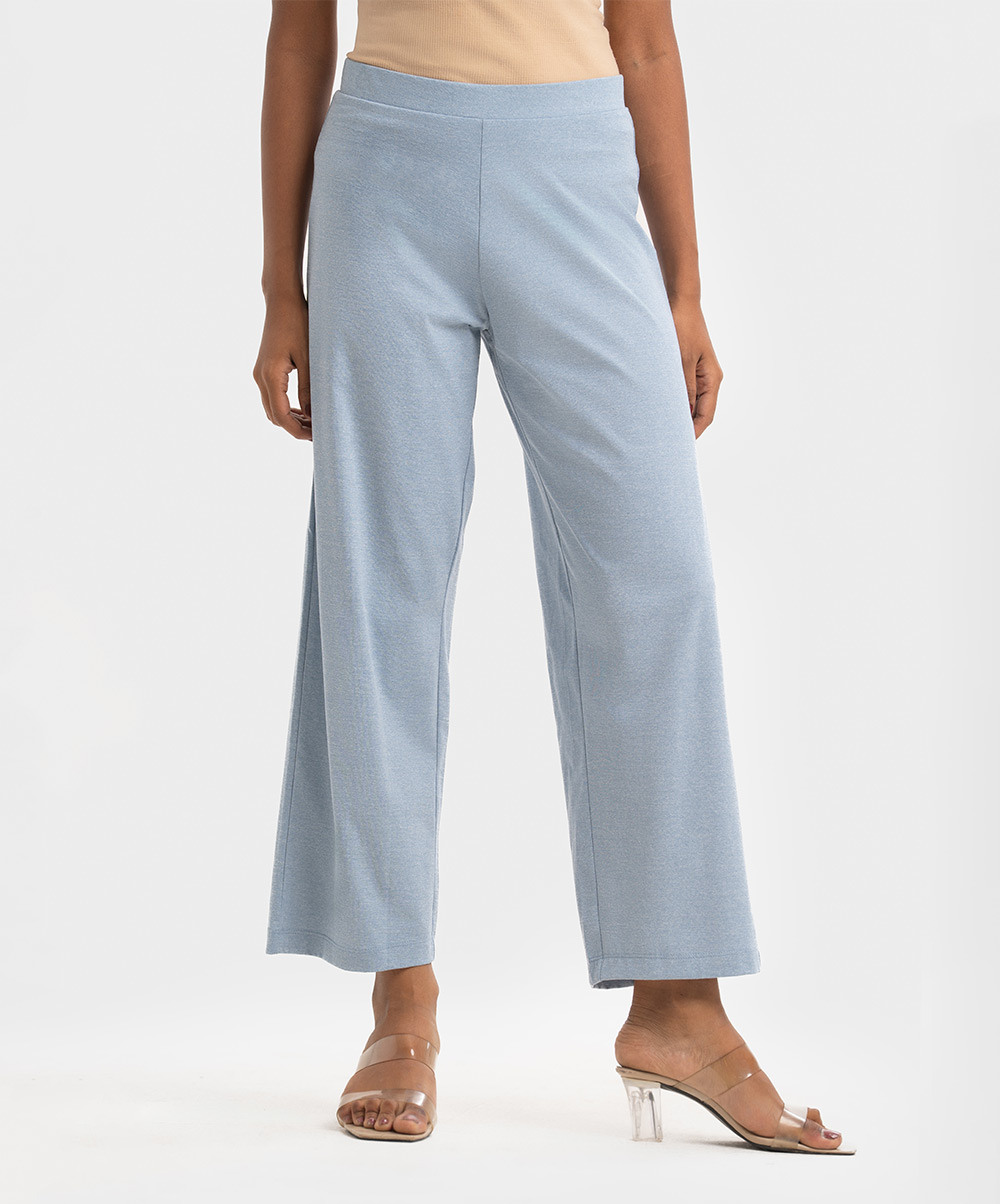 Women’s trouser in stretchable knit fabric. Concealed elasticated waistline.