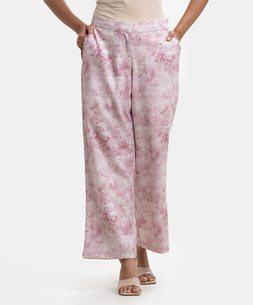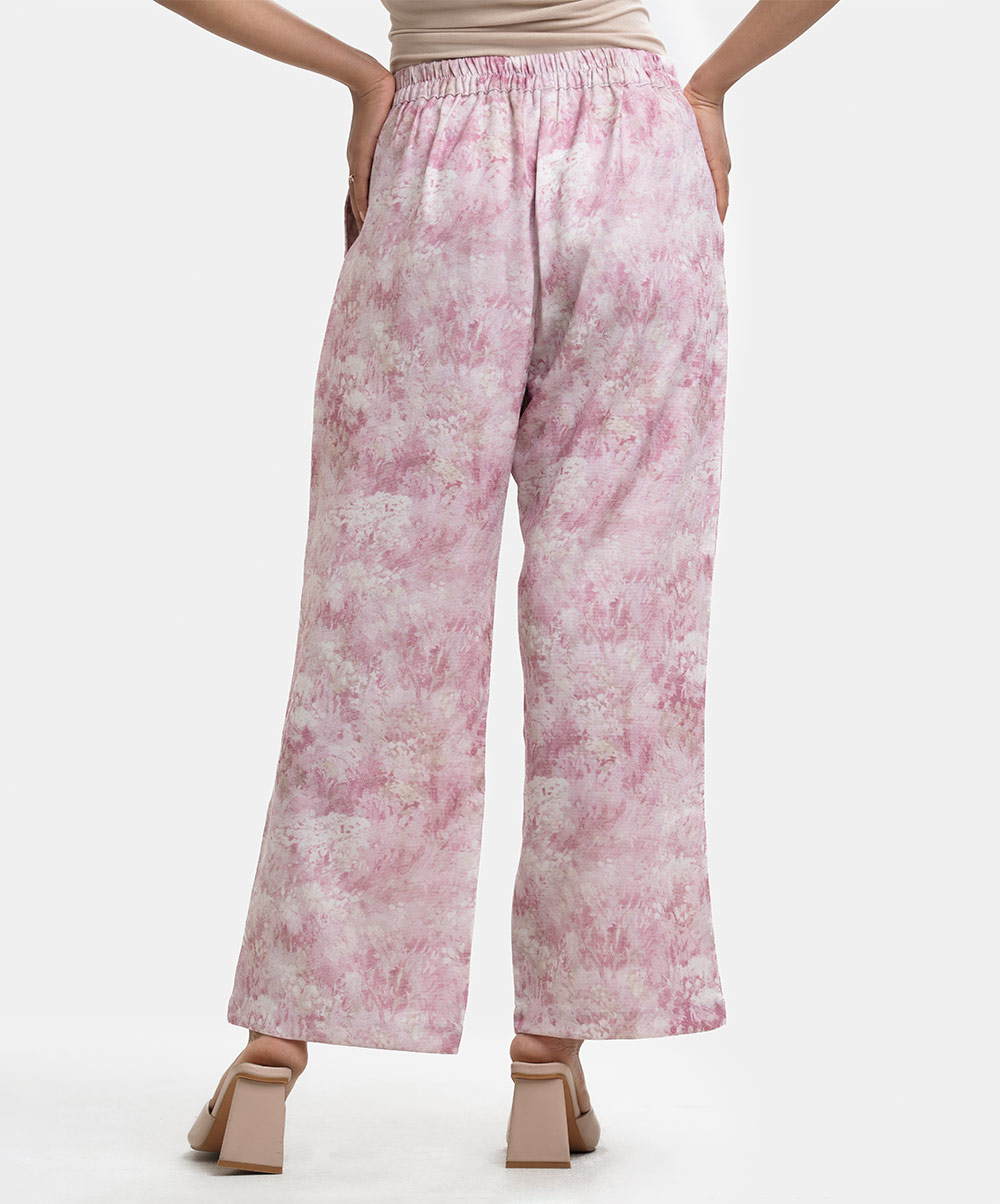 Pink Rayon-blend Wide-leg Trouser